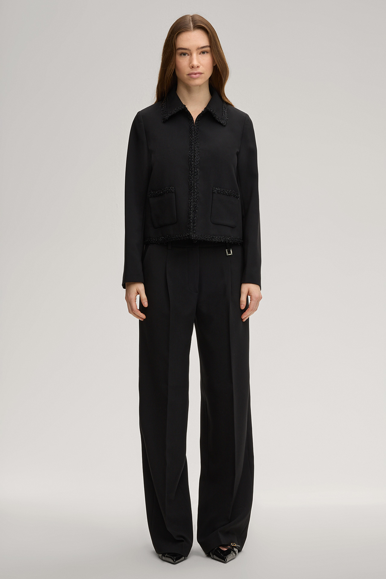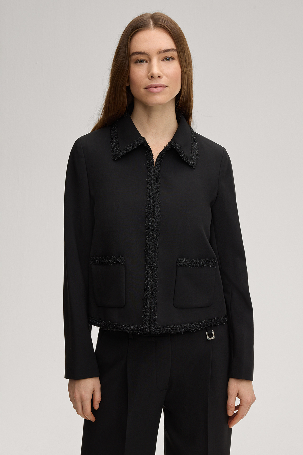 The Jady blazer features subtle textured details that add a touch of elegance. Patch pockets and a turn-down collar highlight the classic flair, rounded off by a concealed hook fastening. The logo-embossed lining and the signé tag on the back ensure the iconic finish.