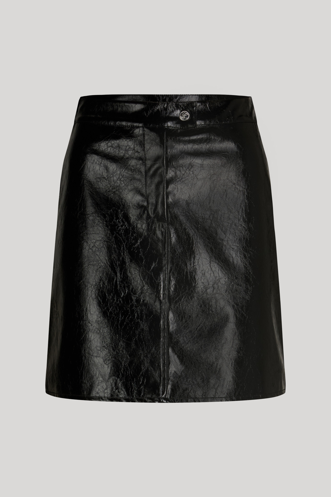 Faux leather in a modern creased look sets the Satsuki skirt apart as a cool piece to pair with blouses, long-sleeved tops or chunky-knit jumpers. The design is accentuated by the inset waistband and offset button and concealed zip duo. A shaping seam adds a striking finish to this item.