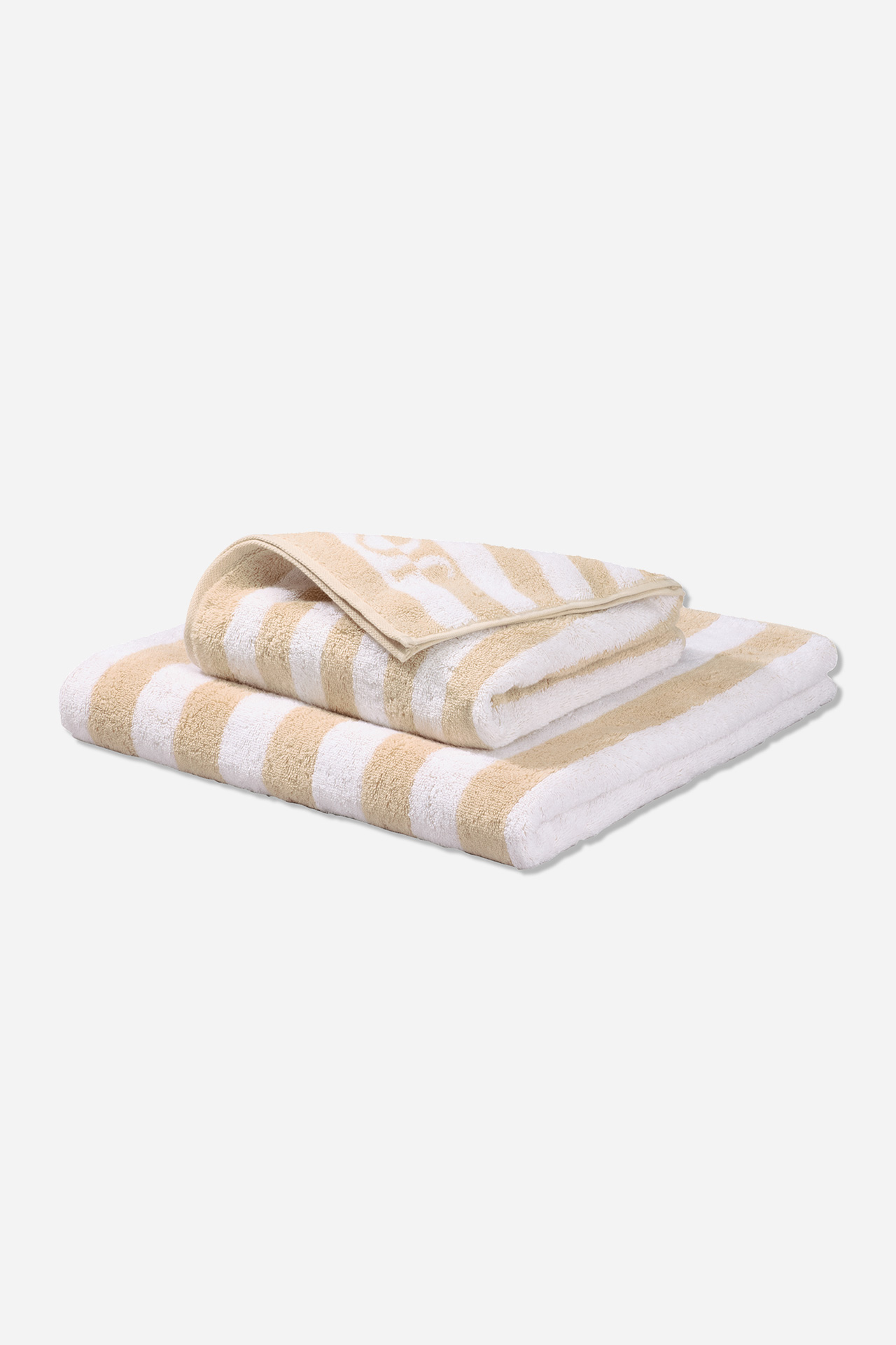 The diverse collection of the SPLIT STRIPES terrycloth range in a striped look boasts a maritime twist, complemented by the iconic minimalist logo lettering. The soft, pure cotton full terrycloth quality ensures the extra fluffy feel - the hand and shower towels are perfect for the Home, Spa, Pool & Beach.