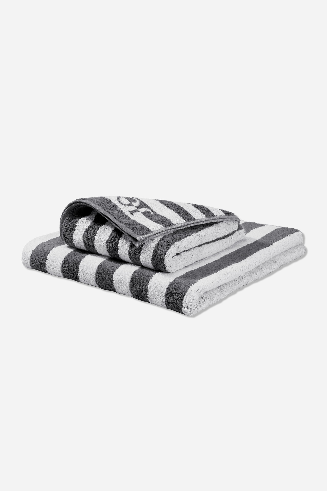 The diverse collection of the SPLIT STRIPES terrycloth range in a striped look boasts a maritime twist, complemented by the iconic minimalist logo lettering. The soft, pure cotton full terrycloth quality ensures the extra fluffy feel - the hand and shower towels are perfect for the Home, Spa, Pool & Beach.