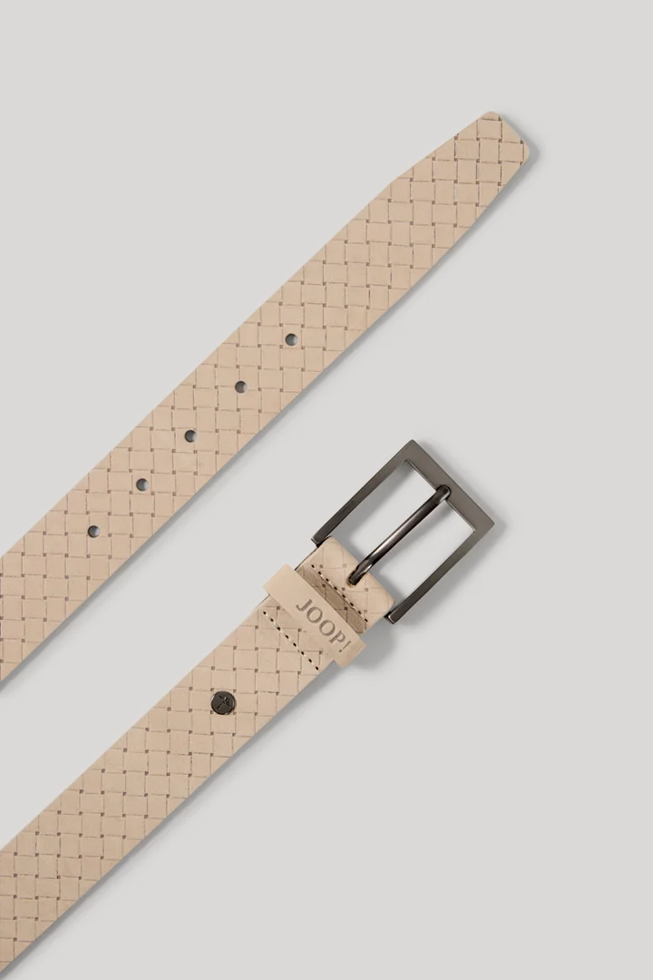 This leather belt gives signature outfits an expressive emphasis. Logo details, the braided structure and the angular belt finish characterize its exclusive look. The buckle provides a style-conscious finishing touch. This accessory looks smart with chinos and jeans.