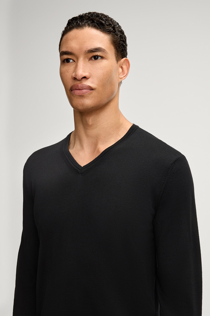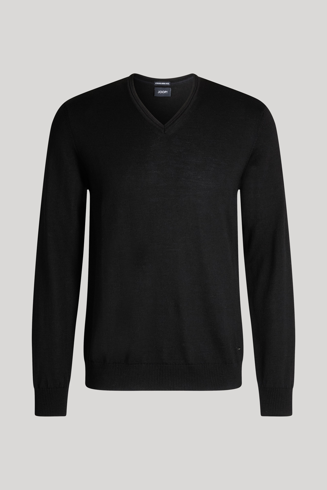 The Damien virgin wool jumper from JOOP! scores highly as a versatile styling partner with a luxurious twist, featuring an elegantly designed V-neck. The fine knit quality in pure merino virgin wool promises superb comfort and is an ideal choice for wearing under suits or with jeans and a coat. Classic ribbed knit cuffs and a logo badge at the hem create a signature finish.
