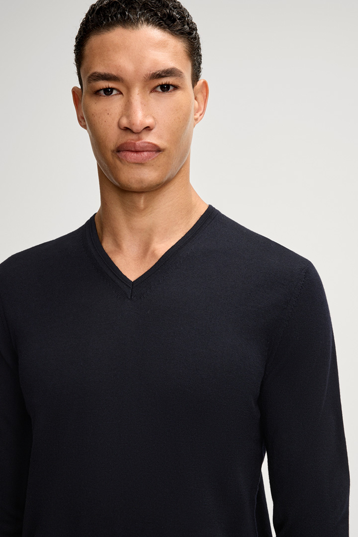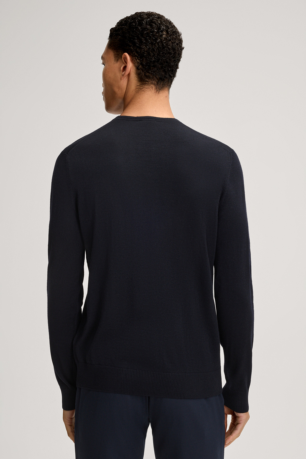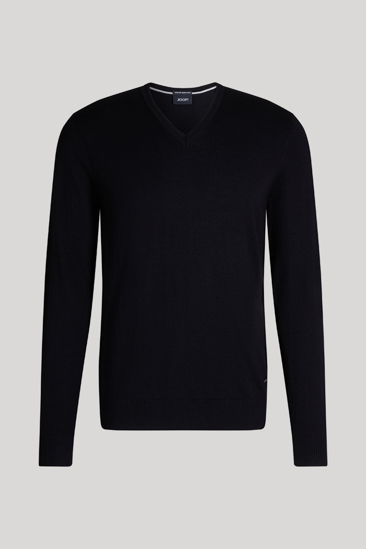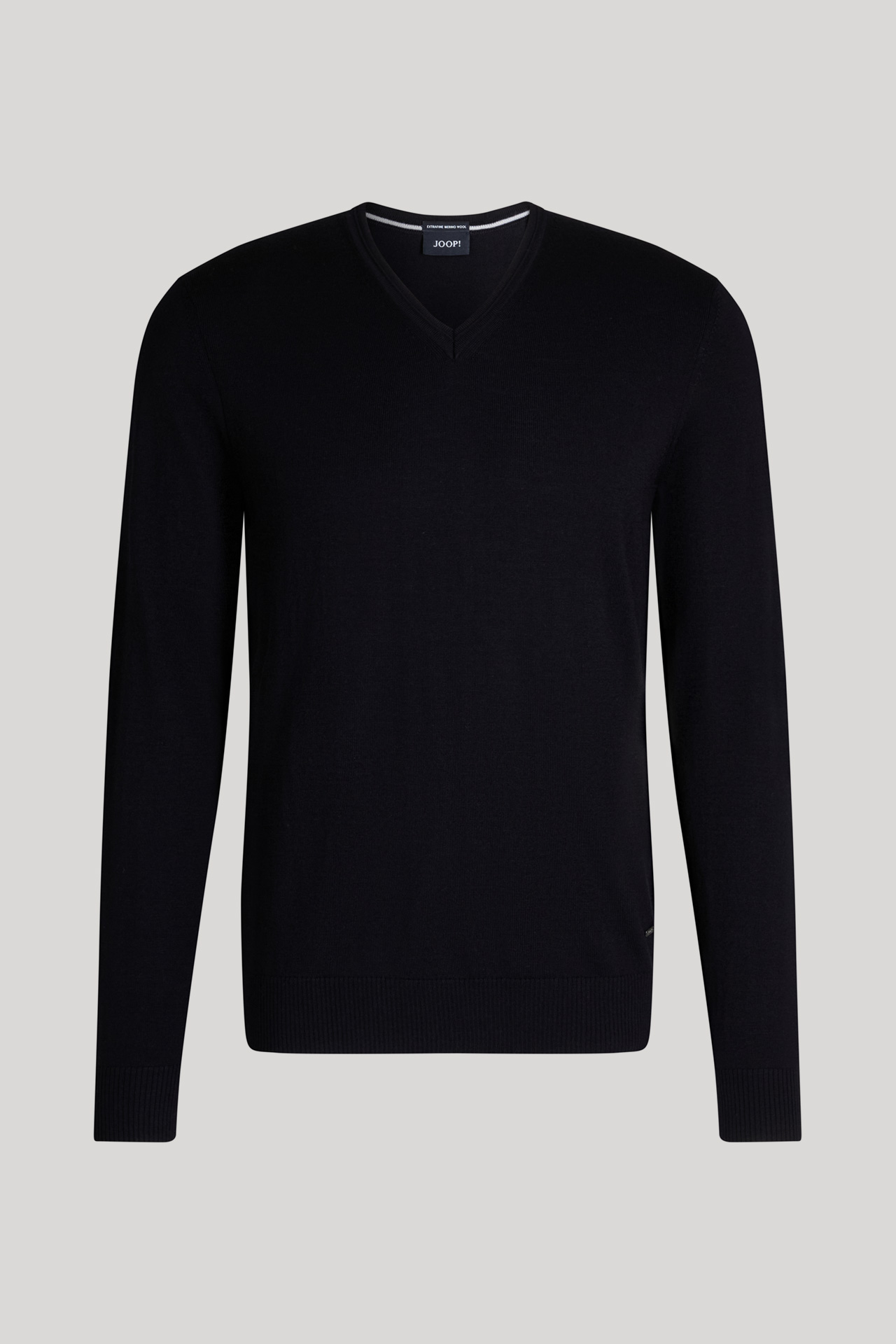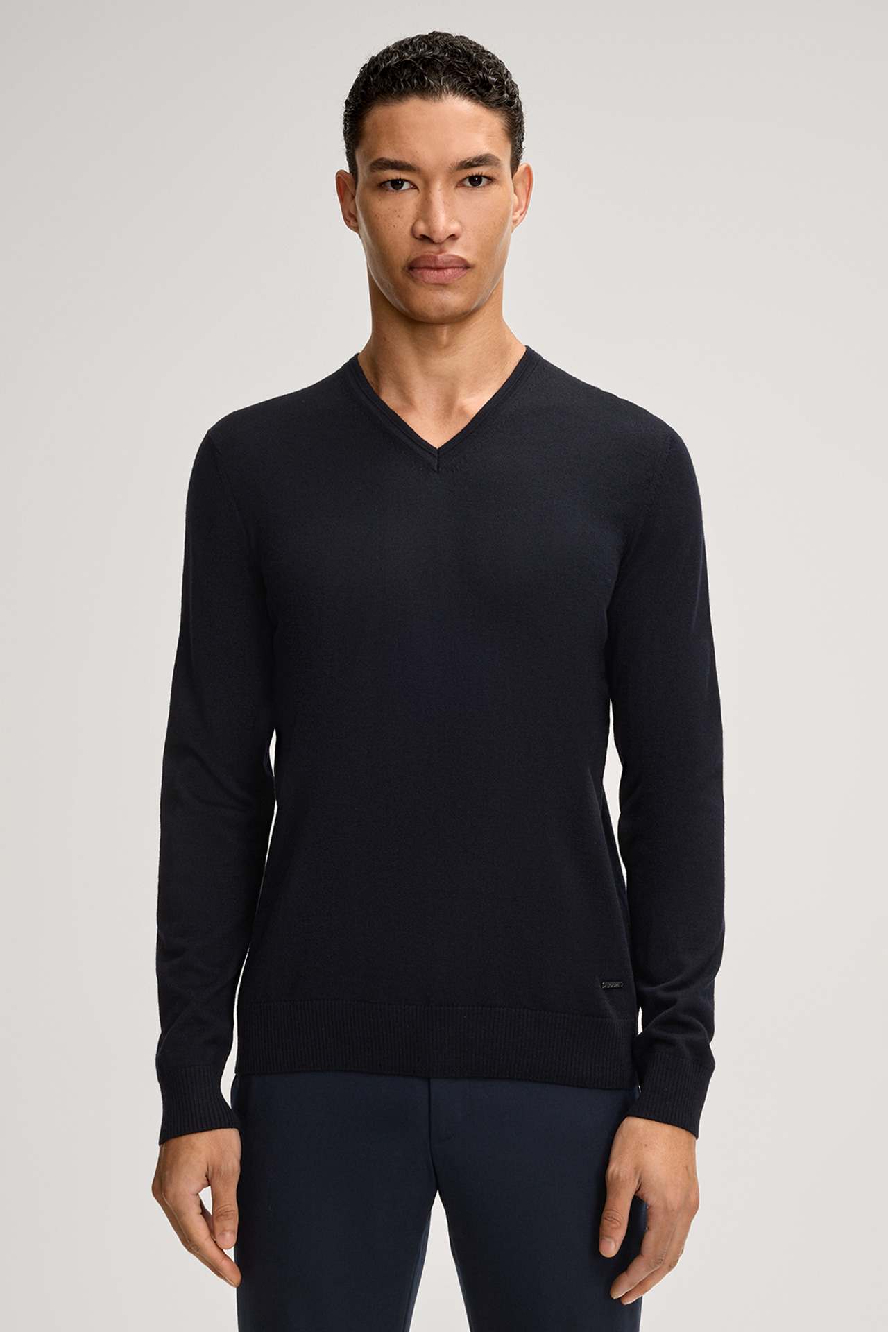 The Damien virgin wool jumper from JOOP! scores highly as a versatile styling partner with a luxurious twist, featuring an elegantly designed V-neck. The fine knit quality in pure merino virgin wool promises superb comfort and is an ideal choice for wearing under suits or with jeans and a coat. Classic ribbed knit cuffs and a logo badge at the hem create a signature finish.
