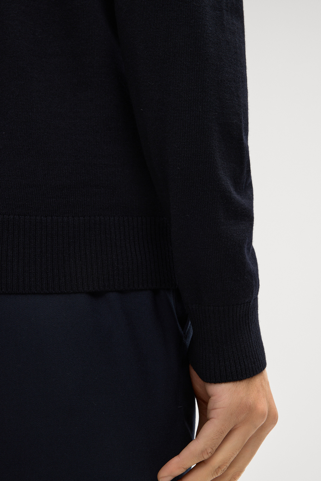This garment was made with mulesing-free wool sourced from sheep farms that forego the mulesing method, thus promoting animal welfare.