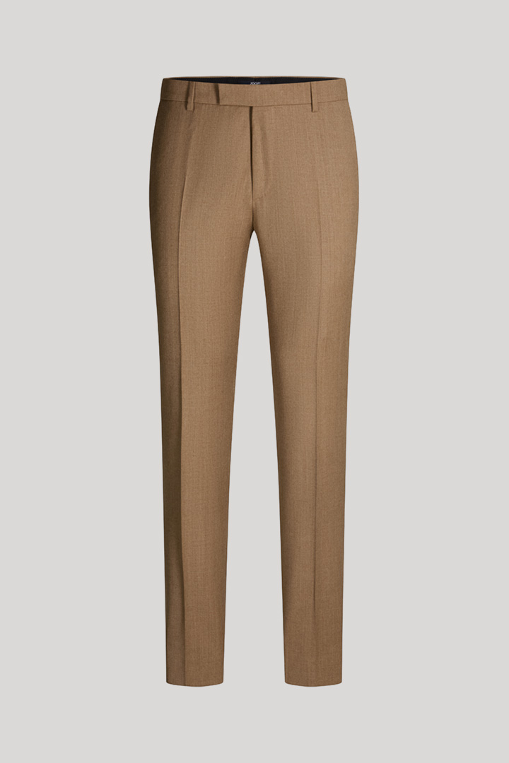 A business classic: the Blayr suit trousers in a slim-fitting silhouette with pressed creases. The concealed hook-and-zip fastening and belt loops at the waistband lend the look a classic finish. In pure virgin wool.