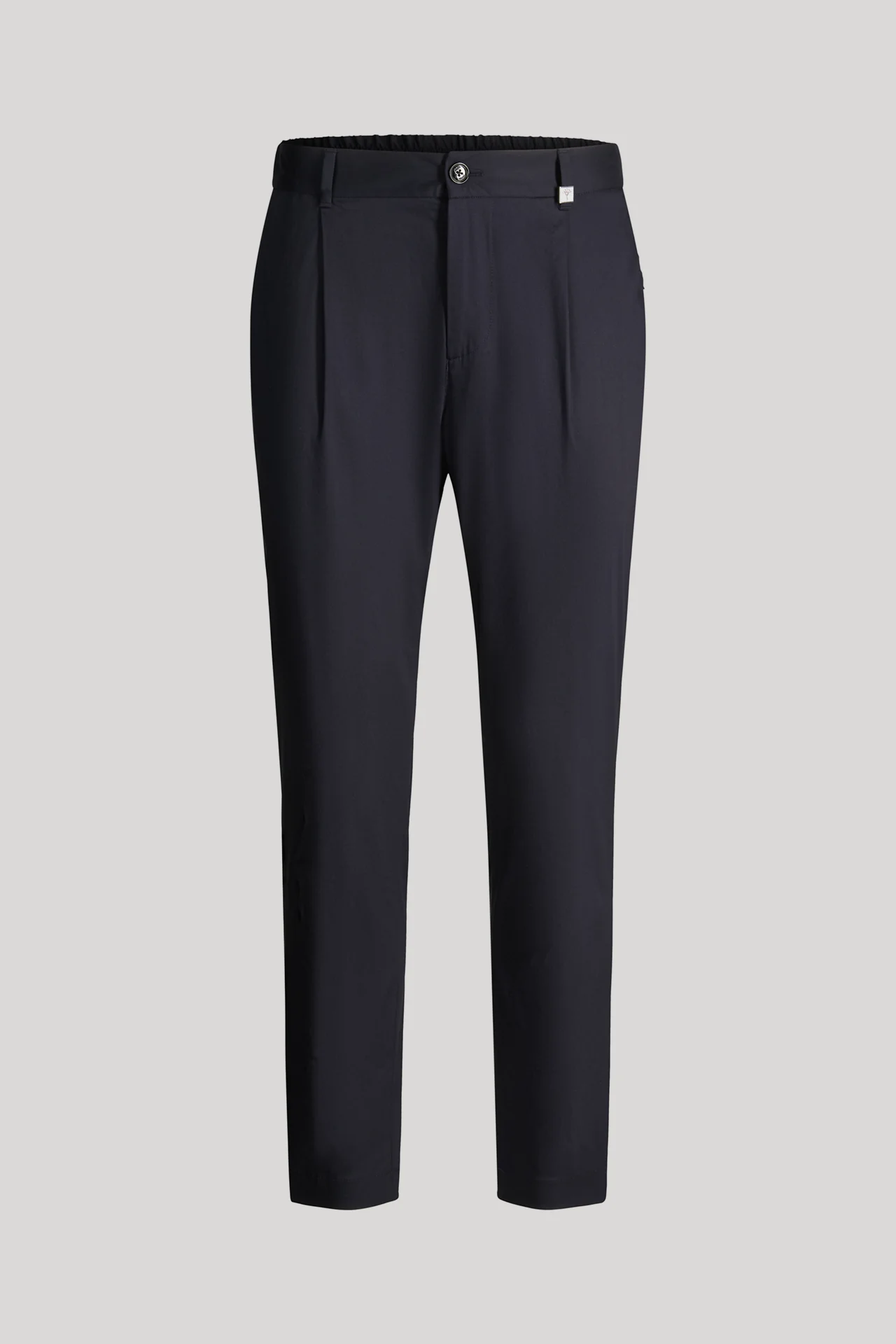 The Lester suit trousers, crafted from a lightweight cotton blend, elevate any outfit and prove to be a versatile choice for business, the office and ambitious settings. The partially elasticated waistband provides a comfortable fit, whilst pleats highlight the style. Slanted back pockets, a logo tag on the belt loop and clear tailoring characterize this style. Paired with the matching jacket, it creates a formal look.