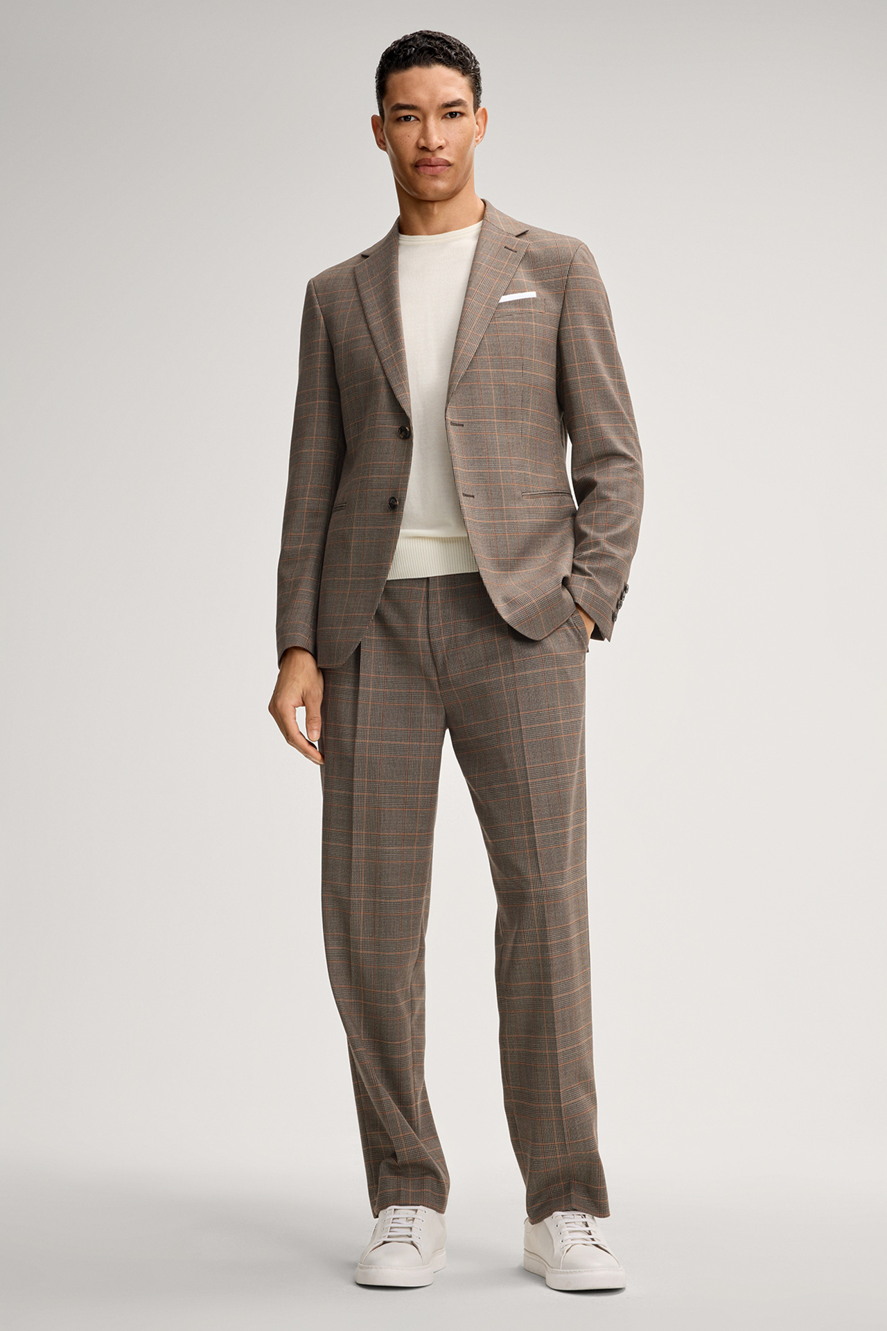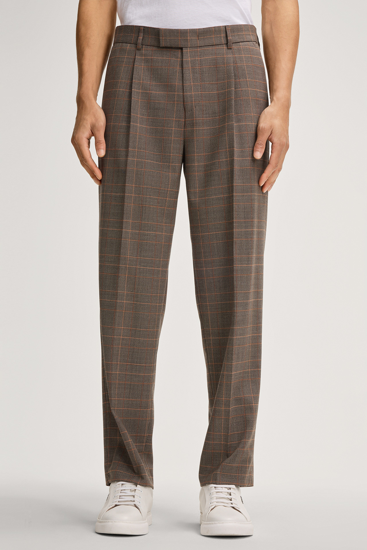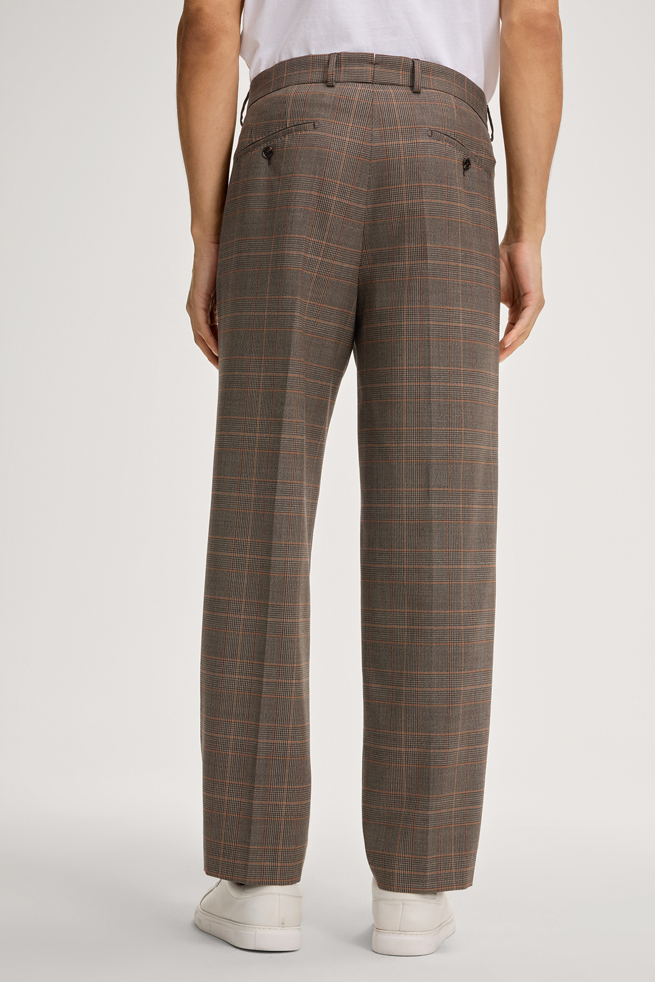 Tailored business look: Rennet suit trousers made of stretch wool in a modern checked pattern. The pleated waist and pressed creases as well as the concealed hook-and-zip fastening accentuate the stylish look. Welt back pockets complete the design – ideal for combining with the matching jacket.