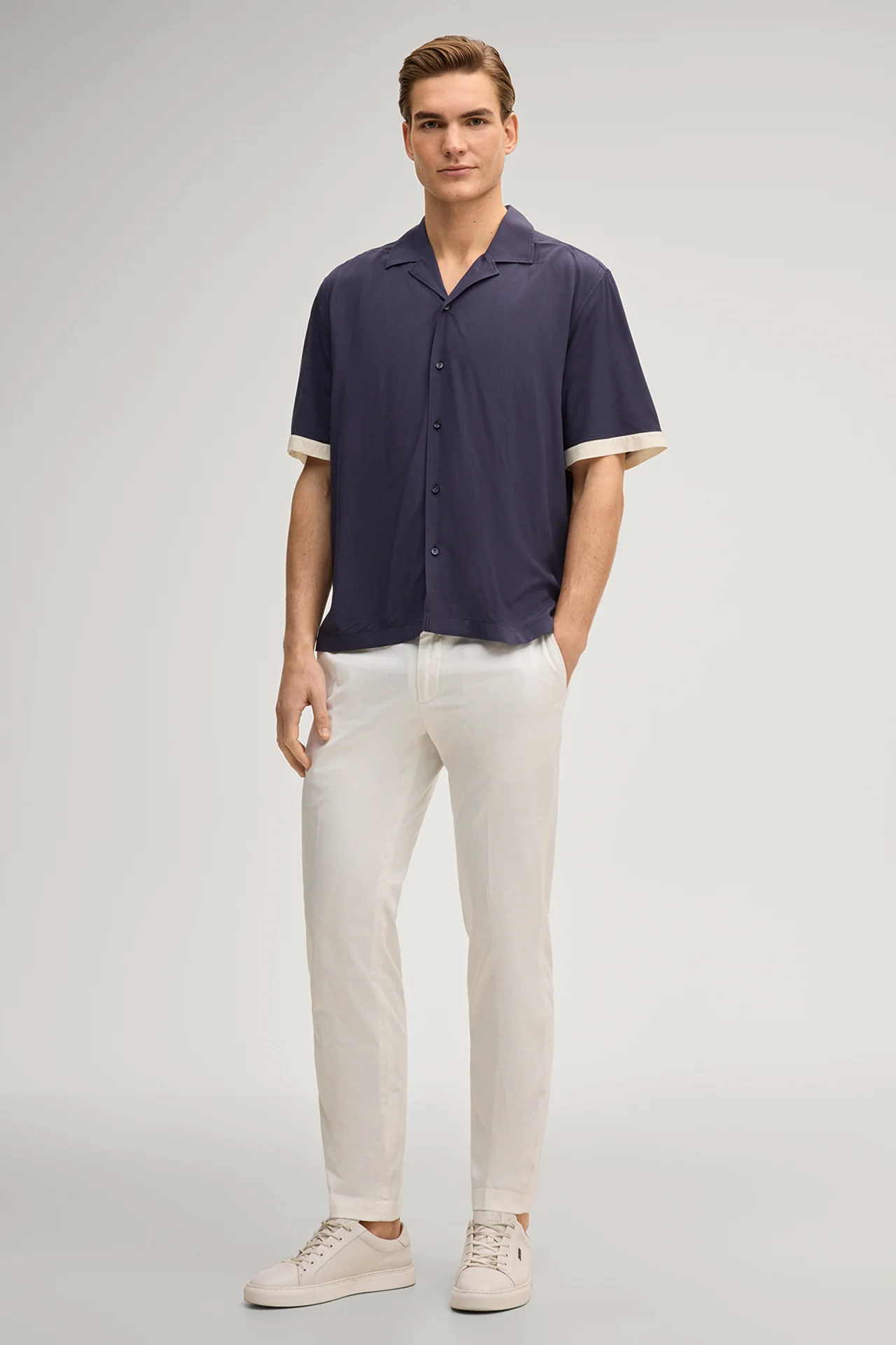 With modern cuffs in a contrasting design, the Kawo short-sleeved shirt is a smart all-rounder for leisure wear and a key look for summer when paired with chino shorts. Pure viscose ensures a comfortable fit. The lapel collar, full-length button placket and back shoulder yoke round off the design in style.