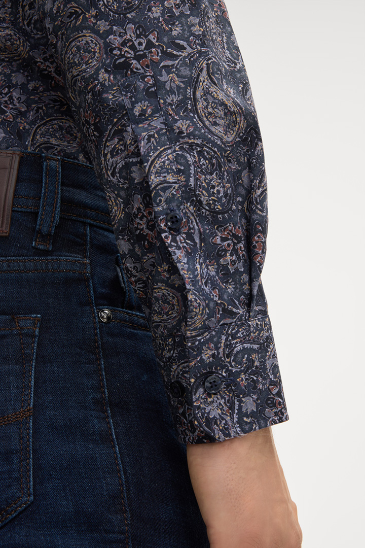 The Pares shirt showcases a modern design with a slim fit and classic Kent collar. Buttoned cuffs and a shaping shoulder yoke complete the look. The pattern in a minimalist print creates accents.