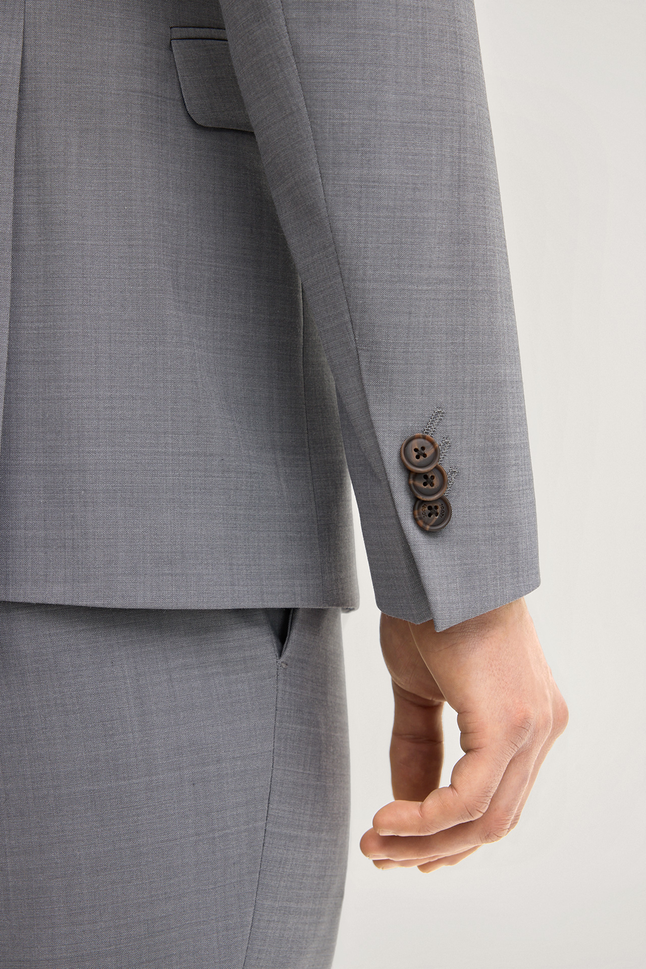 • Single-breasted, fastens with 2 buttons