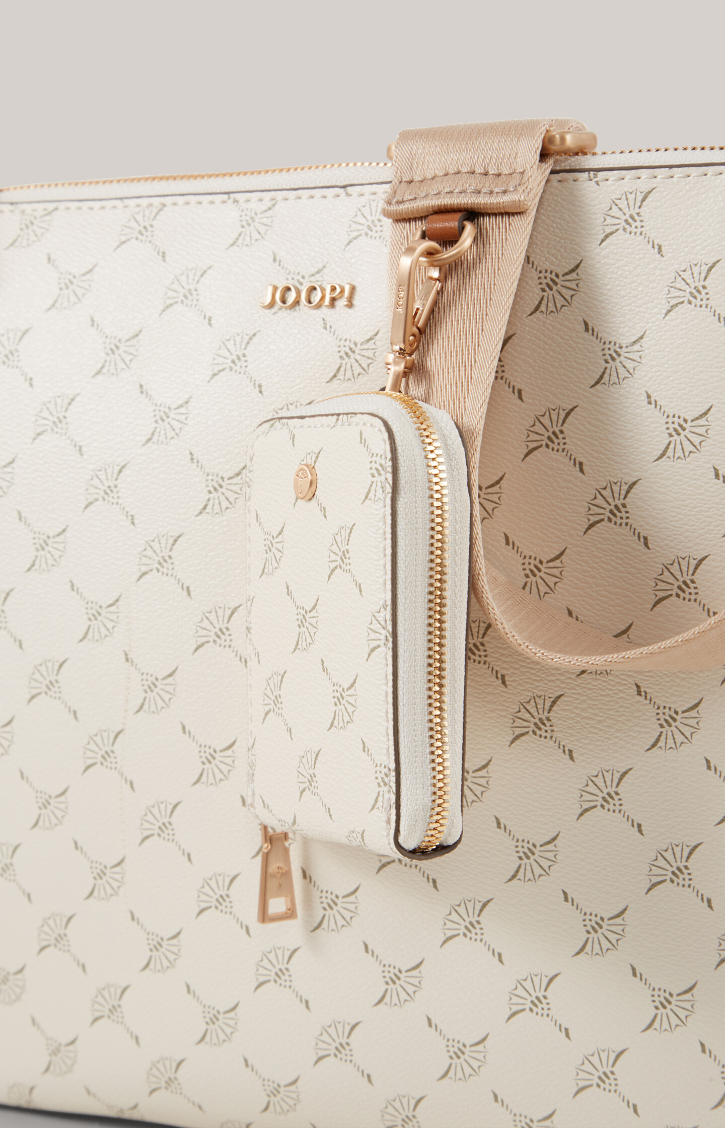 Finely grained faux leather with a characteristic all-over cornflower design characterises the design of the JOOP! Cortina Jasmina shoulder bag. The adjustable shoulder strap, zip and additional small pouch marks out this accessory as a winner with its functional sophistication. The generous square format exudes modern flair. The roomy interior with zip and slip pocket will securely store all your essentials.