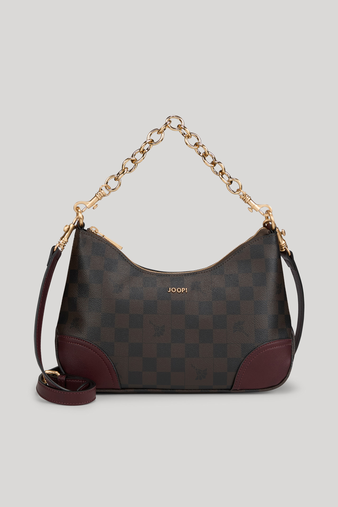 Piazza Edition Aimee - with its iconic look, this shoulder bag is a favourite accessory. The combination of chessboard signé and smooth leather-look details creates a luxurious twist, stylishly complemented by the link chain as a carrying handle. The zip fastening and adjustable carabiner clasps make functional finishing touches.