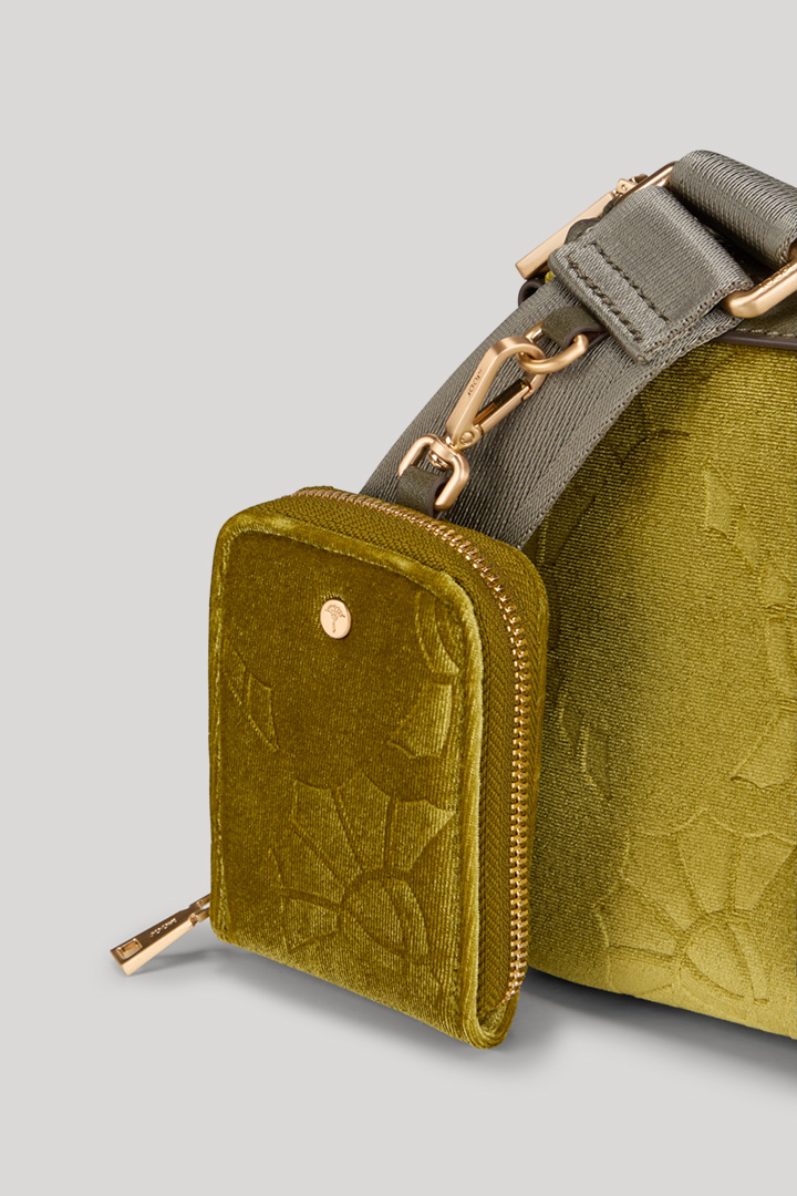 Velvet with cornflower embossing gives the Ricamo Dolce Jasmina shoulder bag an iconic look, which is complemented by the matching logo patch. The zip-up inlay and adjustable shoulder strap define the piece, while the additional pouch ensures a coordinated finish.