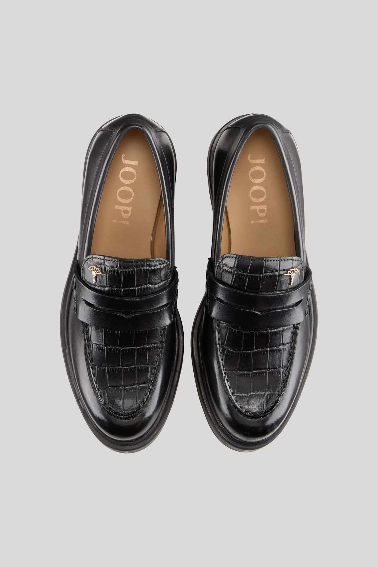 These smooth leather loafers with textured details on the front in crocodile effect make stylish companions, complemented by the classic decorative tab and an iconic signé tag. The modern rubber sole ensures a comfortable finish.
