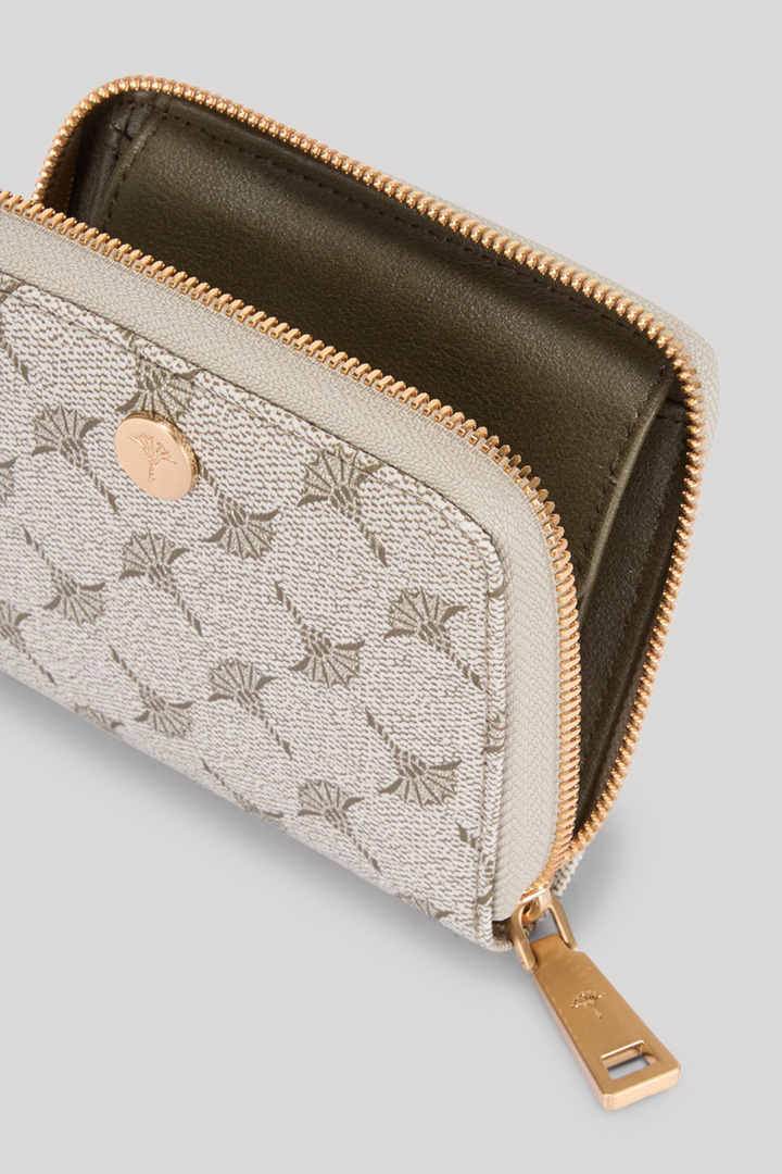 The Mazzolino Nisa wallet will impress you with its grained faux leather finish in the iconic all-over cornflower design. Cards, coins and notes are stored in style thanks to this iconic accessory with all-round zip fastening and separate coin compartment. A signature logo tag rounds off the piece harmoniously.