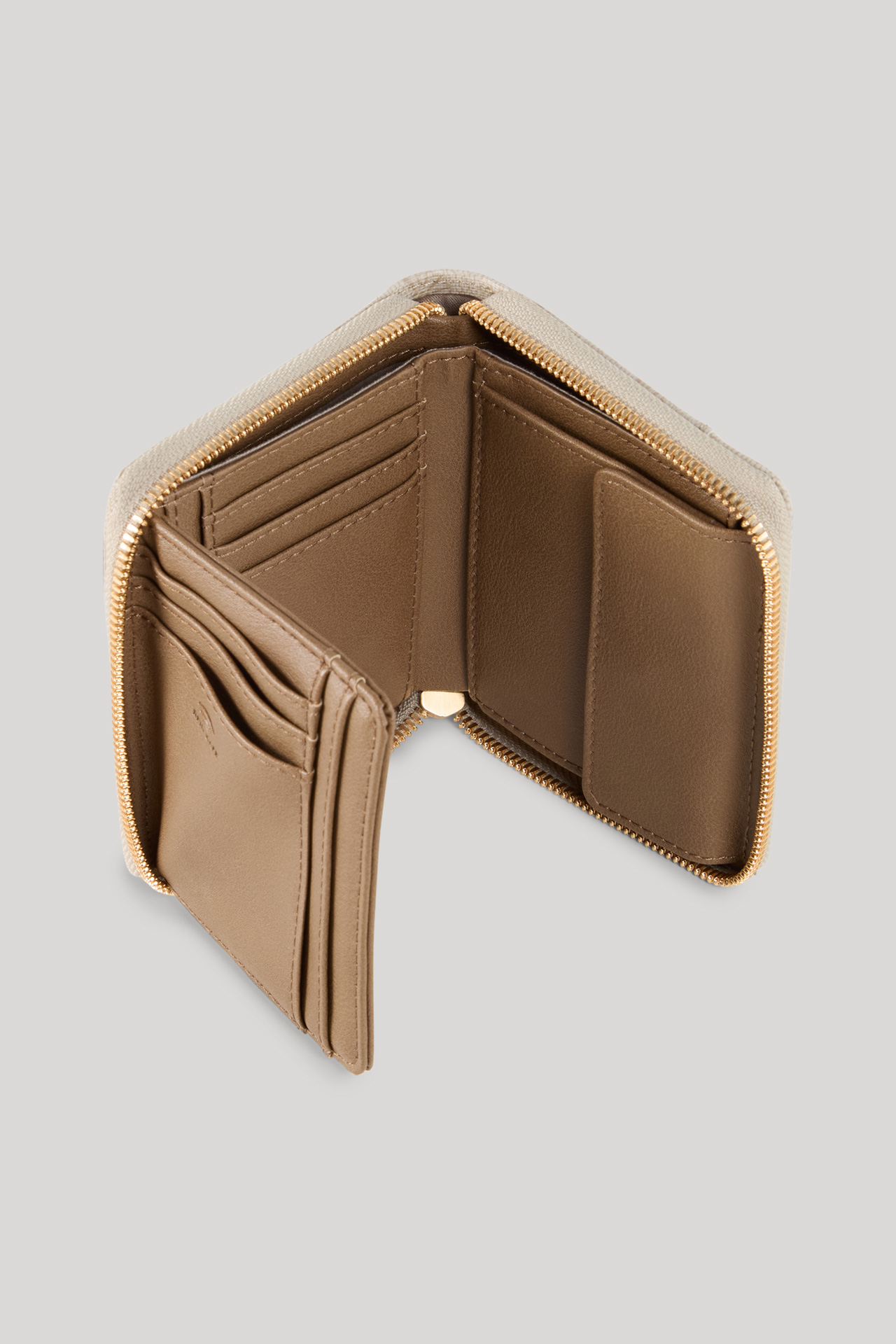 An iconic accessory, the Mazzolino Nisa purse features an all-over cornflower print with a matching metallic logo plaque. The piece has a zip fastening and is characterized by its inlay, which includes various pockets, card slots and compartments for notes. An additional compartment with a flap and press stud for coins completes this accessory in style.