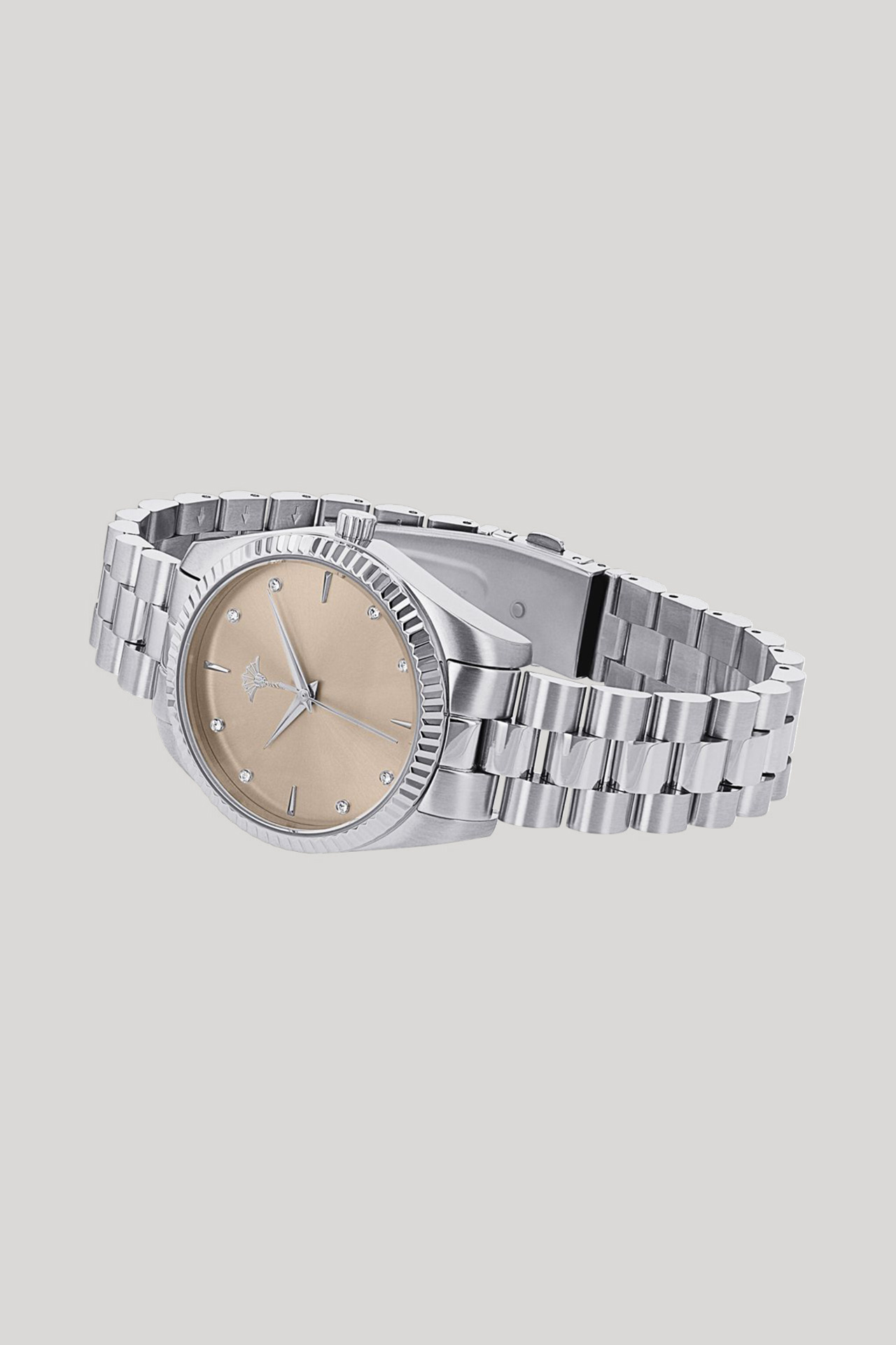 Sparkling eye-catcher: this wristwatch showcases a sunray-look dial and glittering zirconia gemstones - complemented by a metal link bracelet with a tilted folding clasp for easy wear and removal. The piece is water-resistant up to 10 bar, making it the perfect accessory when showering and swimming. Supplied in a decorative jewellery box, the item proves to be a highlight gift for special occasions.