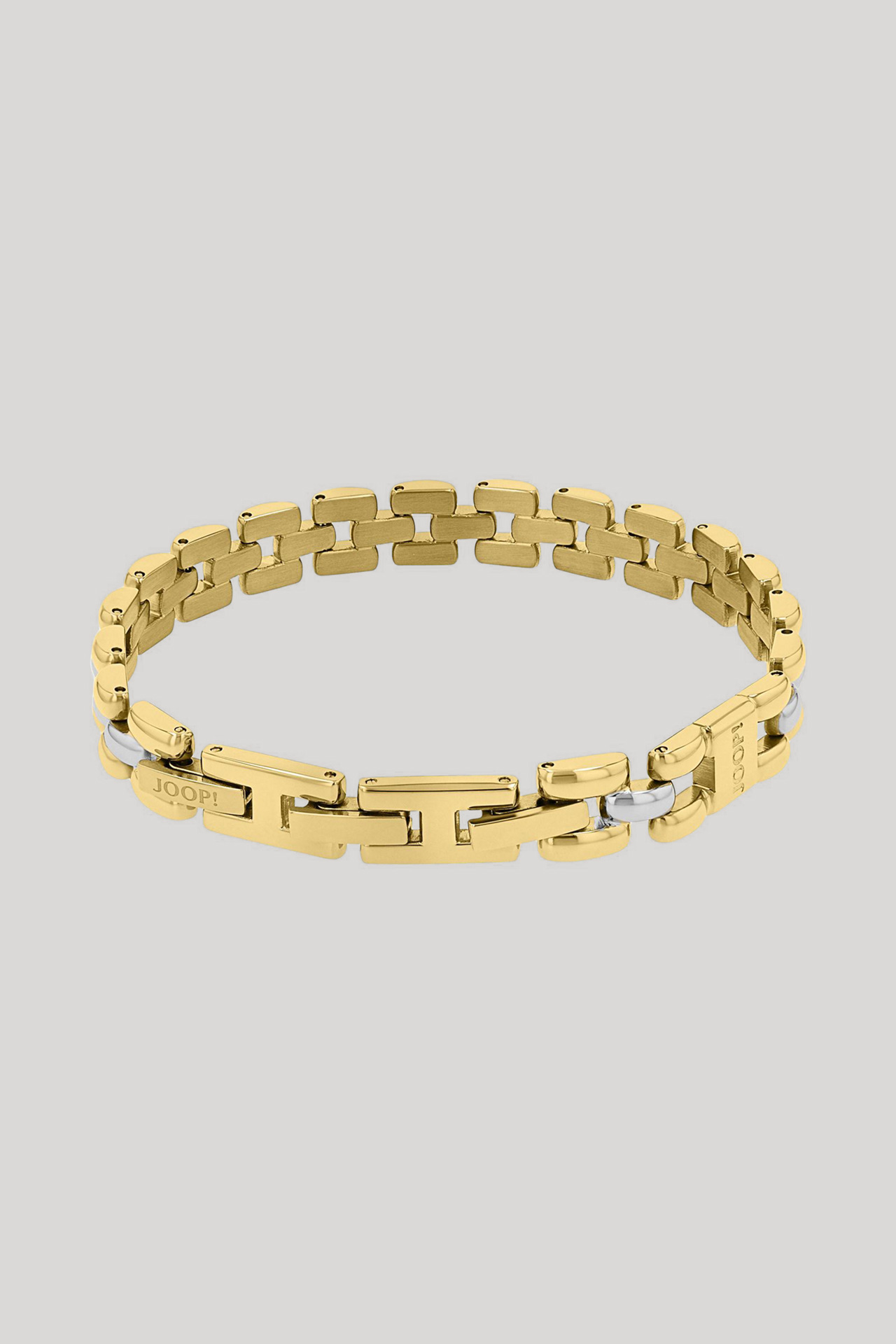 Bracelet with glam effect: the shiny gold bracelet with silver-coloured accents in a modern two-tone look. The logo-embossed folding clasp makes it comfortable to put on and take off. The matching necklace works as a set.