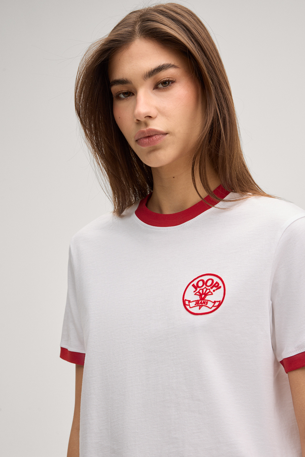 A modern leisure companion with retro charm, the short-sleeved Tordis T-shirt is accentuated by the logo emblem on the chest and contrasting elements. The feminine round neck completes the design with a smart finish. The pure cotton fabric offers outstanding comfort and makes this piece an indispensable all-rounder.