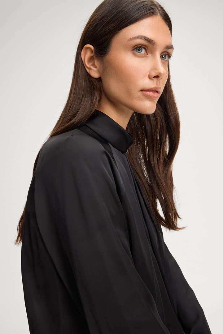 Made from flowing satin fabric, the Belina blouse impresses as a feminine piece for a variety of styles. The design features sophisticated pleated details and a keyhole cut-out with buttons at the back. Raglan sleeves add a fashionable finishing touch.