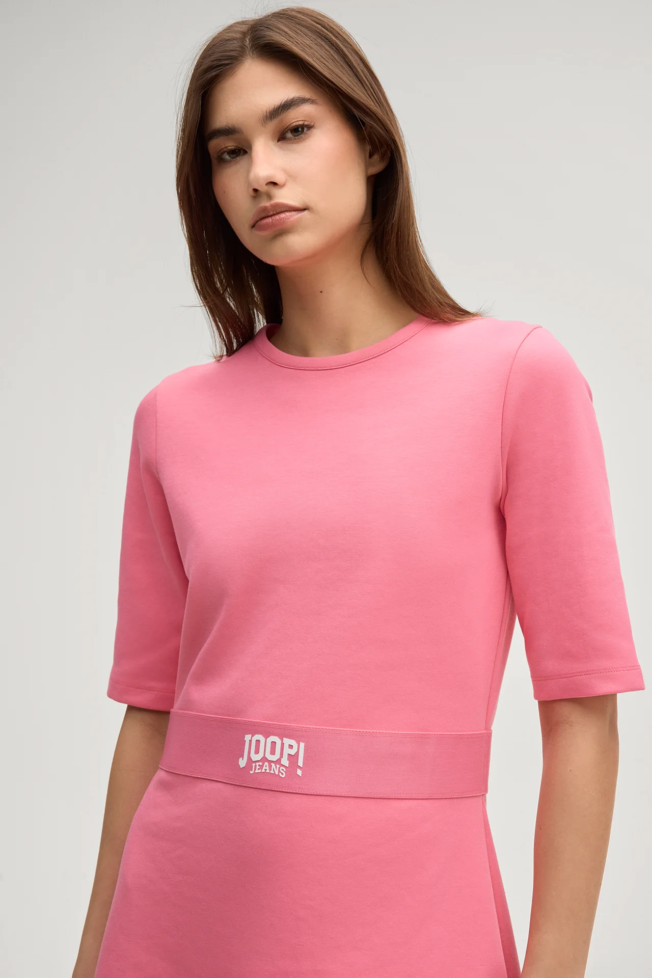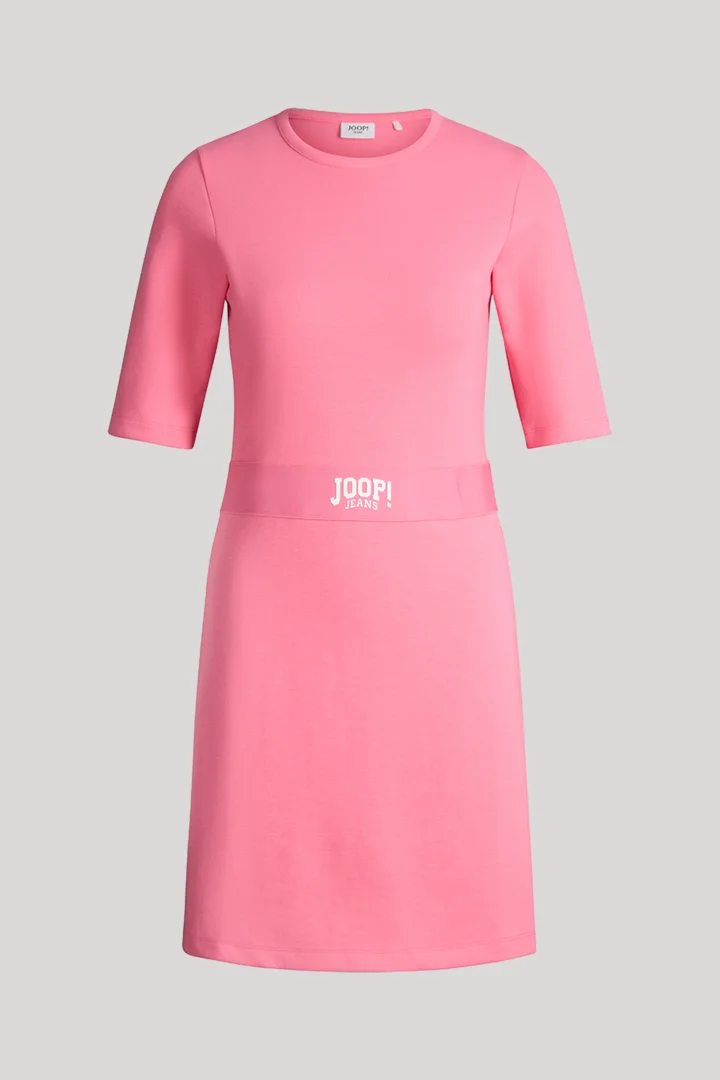 With its sweatshirt look and lightweight cotton blend, the Tri dress is a favourite for city breaks, shopping trips and summer days. The appliqué logo grosgrain ribbon in a belt style provides an eyecatcher. The classical round neckline and modern A-line silhouette complete the feminine flair.