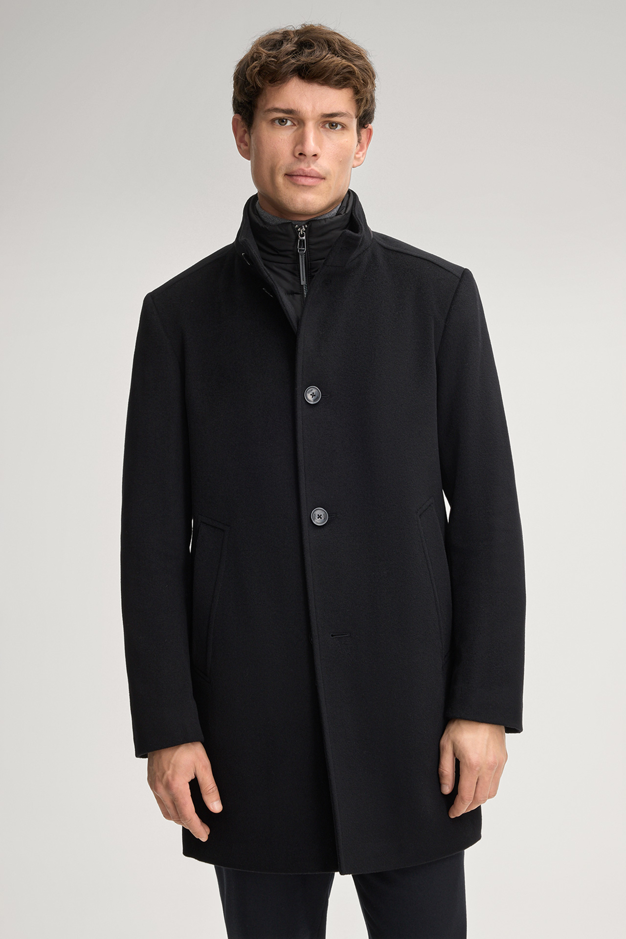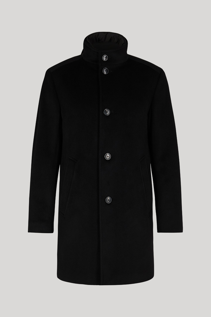 The Maico coat is a comfortable piece thanks to its classic wool blend. The stand-up collar and button placket with logo design create a modern look. Side pockets and a slit harmoniously round off the piece.
