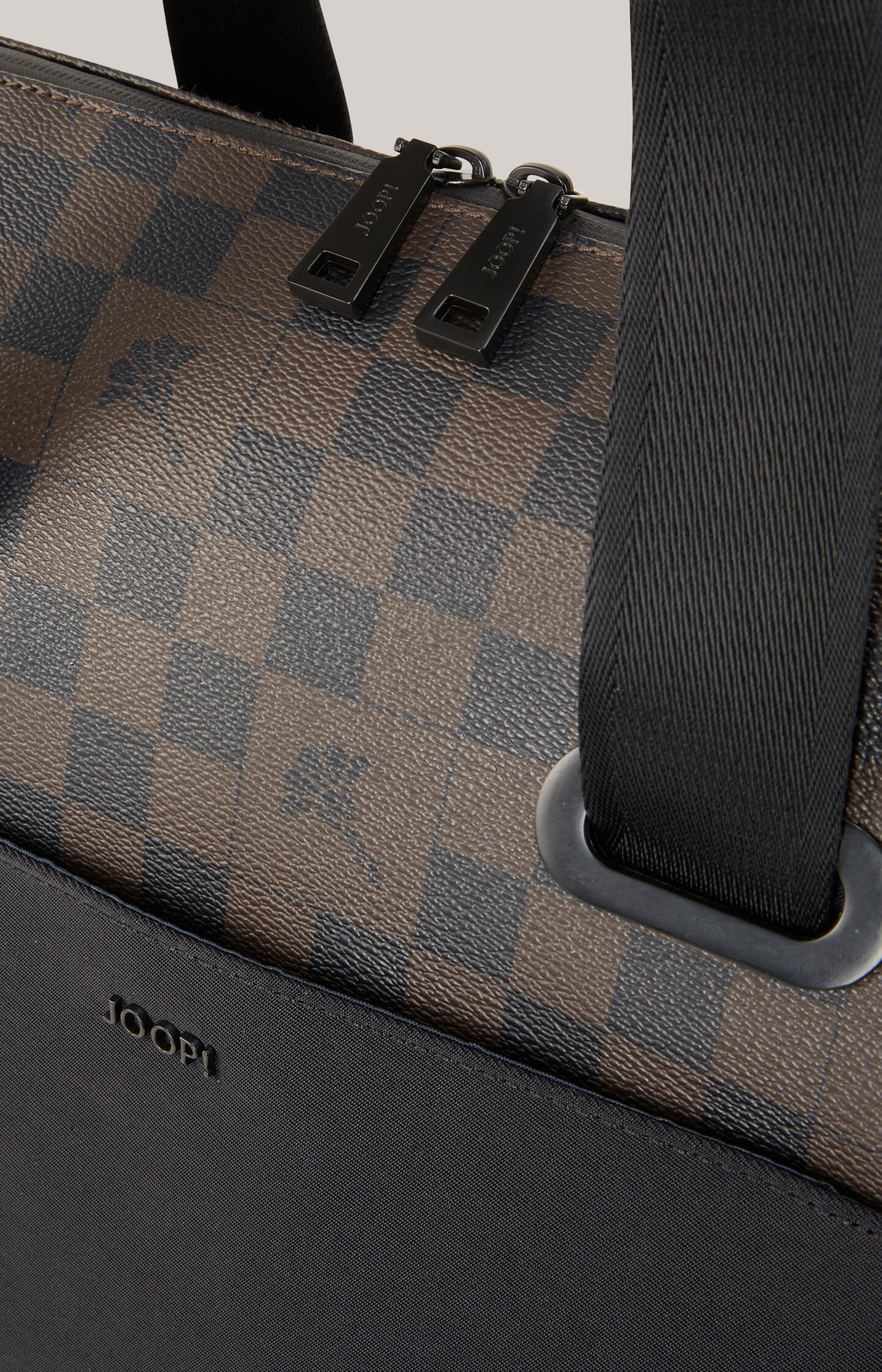 As a stylish companion for short trips and excursions, the Piazza Numana Maik weekender is sure to impress in this elegant chessboard design with cornflower logos in finely grained faux leather. A long, detachable crossbody strap and short handles with an additional snap button strap ensure that it is comfortable to carry. Important essentials can be safely stored in the inner zip and slit pockets, complemented by a textile front compartment with an embossed metallic logo.