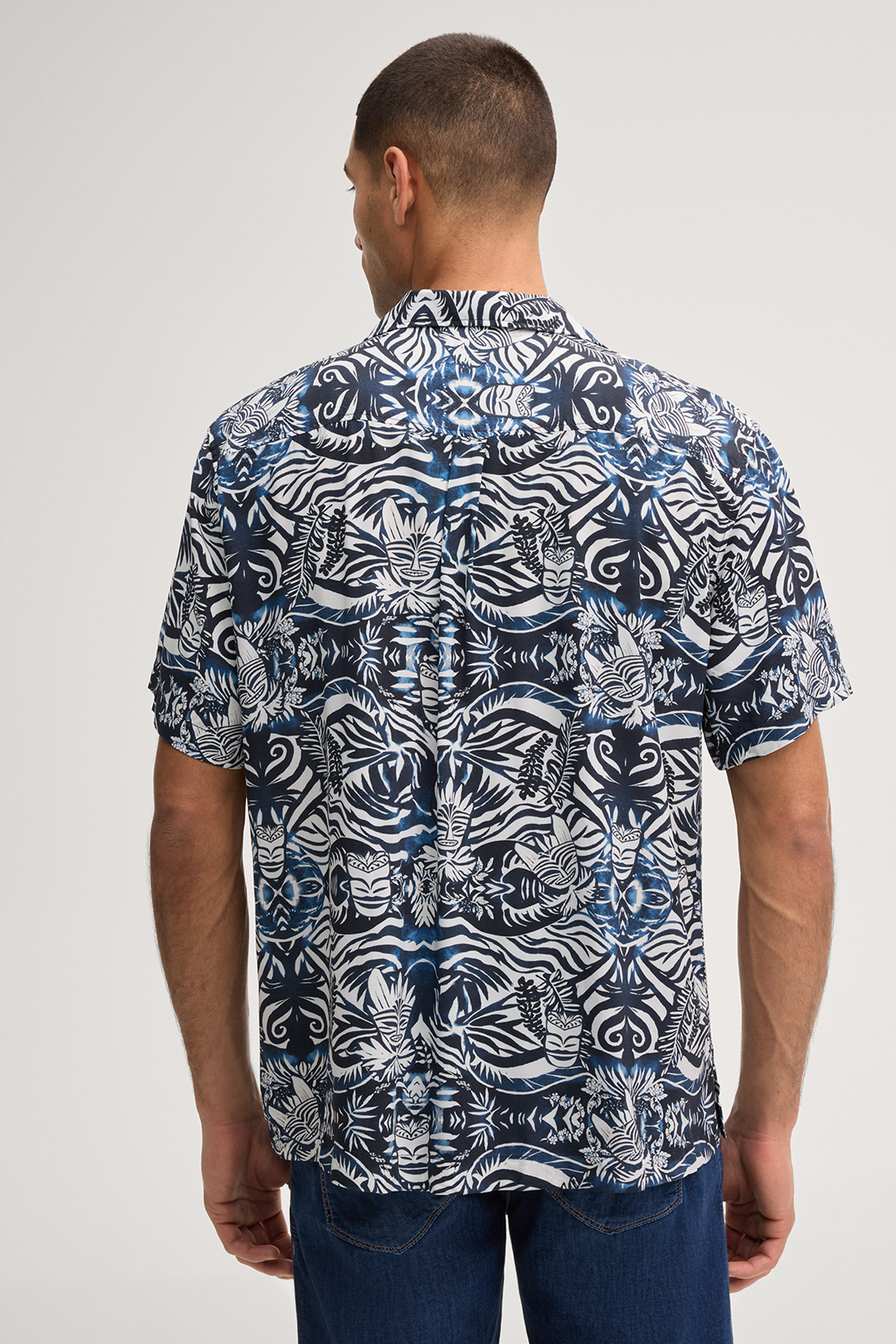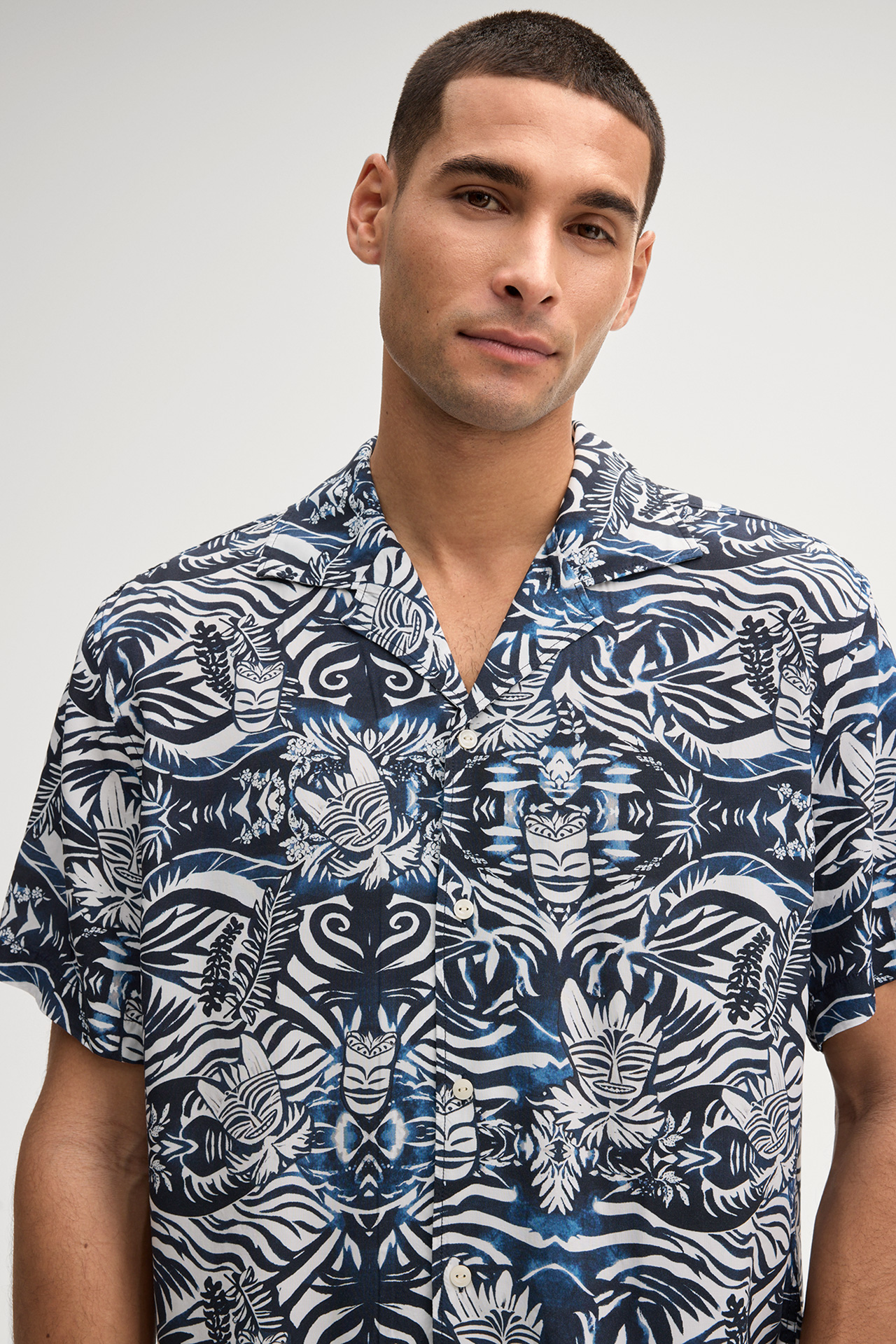 Casual for summer, leisure and beach holidays, the Hanes shirt made of lightweight viscose is an impressive all-rounder. The expressive print gives the look a dynamic twist. The lapel collar, full-length button placket and double-stitched hems provide a classical upgrade. The box pleat at the back rounds off the statement piece in style.