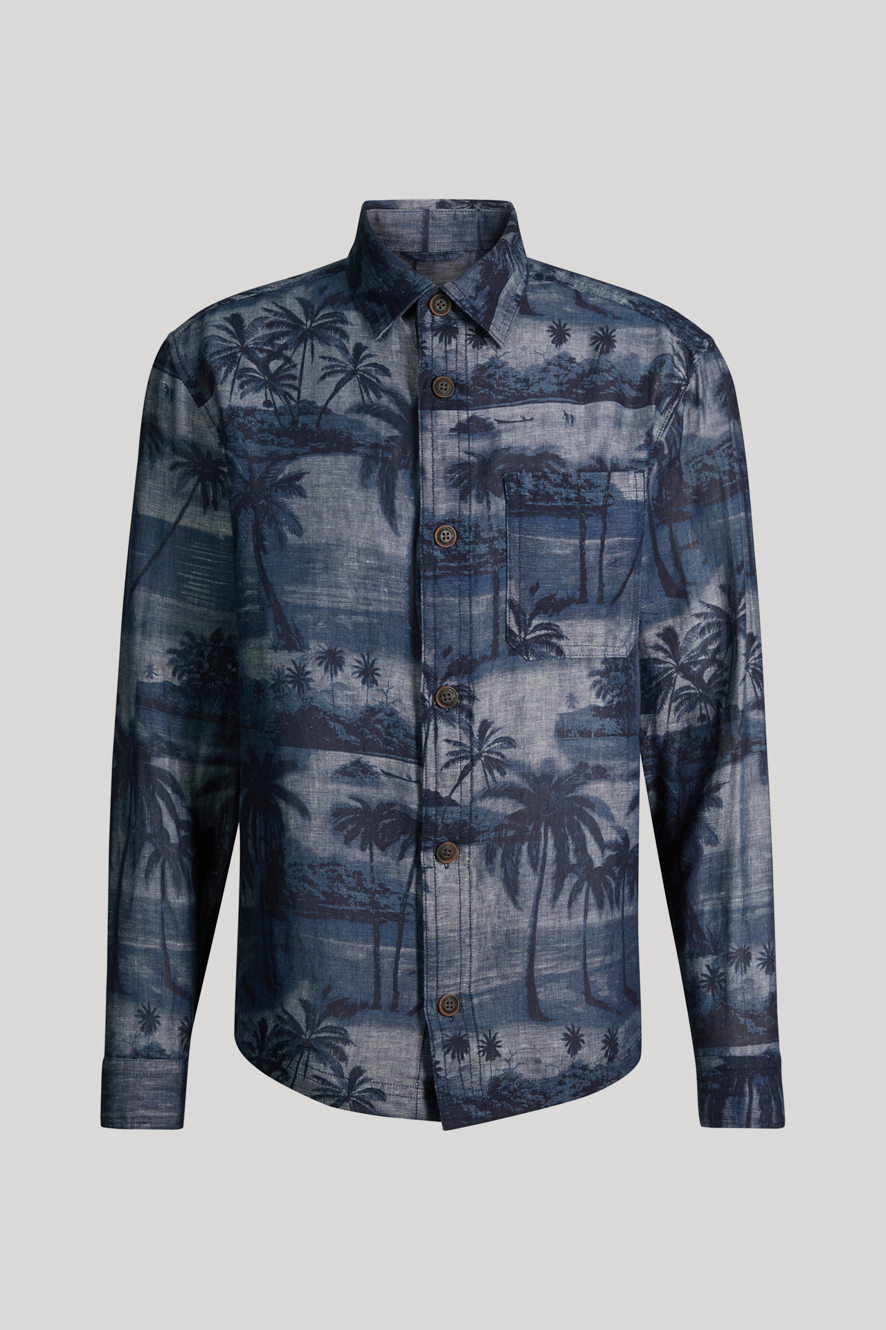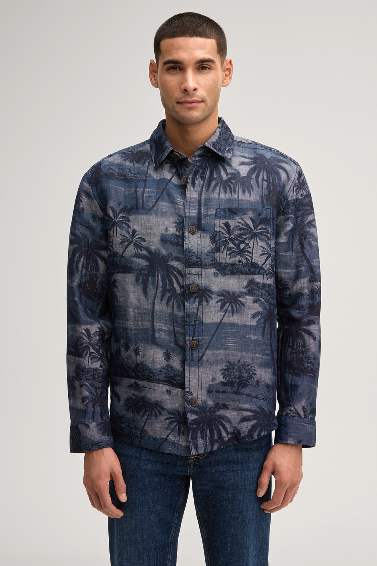 Whether worn on its own or as an overshirt over a T-shirt or longsleeve top, the Harvi shirt is a modern update to any outfit. The design is characterized by a stylish motif print and patch pocket. Classical details such as the shark collar and full-length button placket provide an elegant twist. The linen and cotton blend provides comfort.