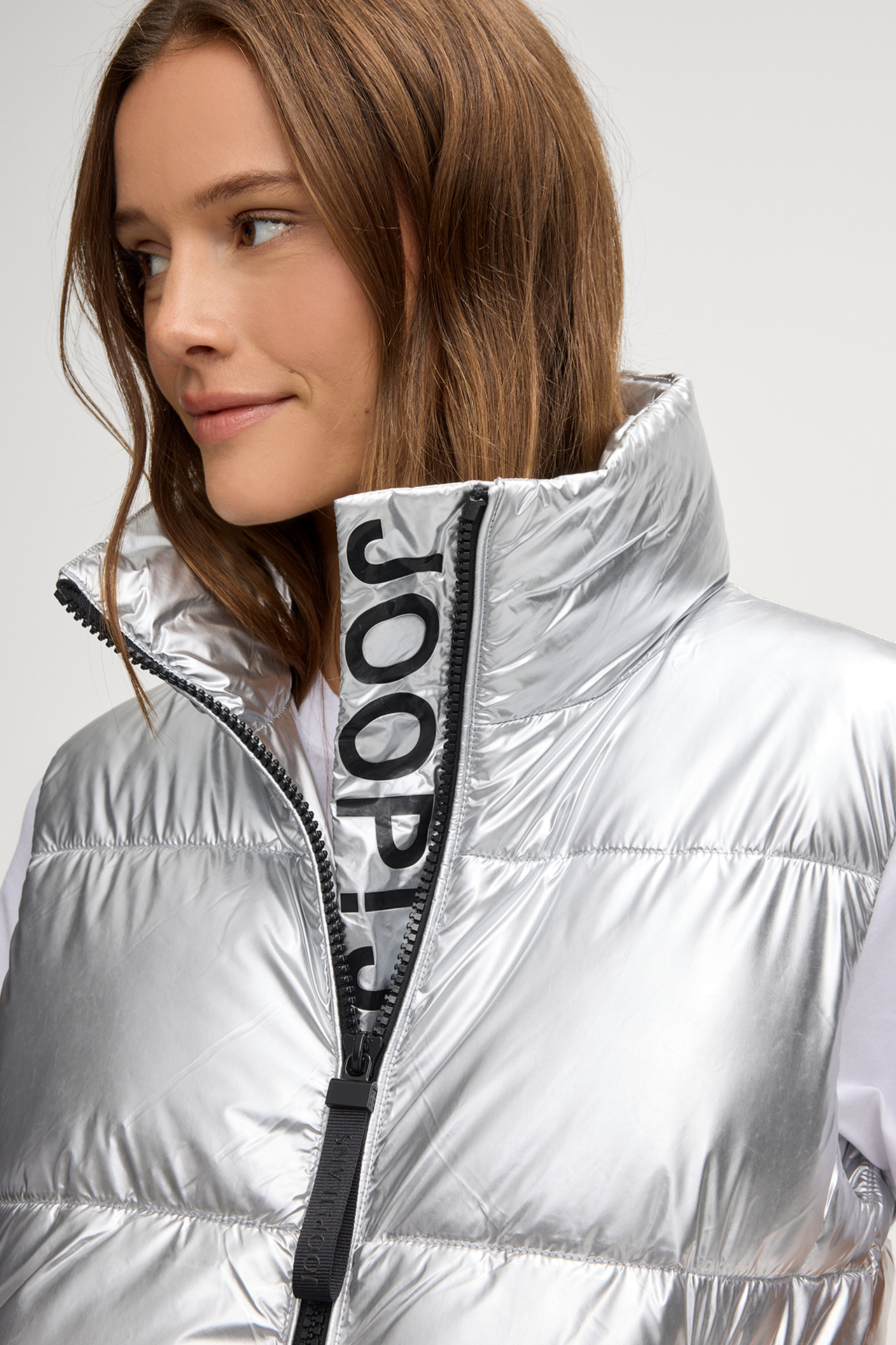 The Victoria puffer waistcoat stands out with its glossy nylon design. A high stand-up collar, two-way zip and zip pockets lend this outerwear piece a functional twist. The adjustable drawstring at the hem ensures a casual finish. Made of quilted nylon.
