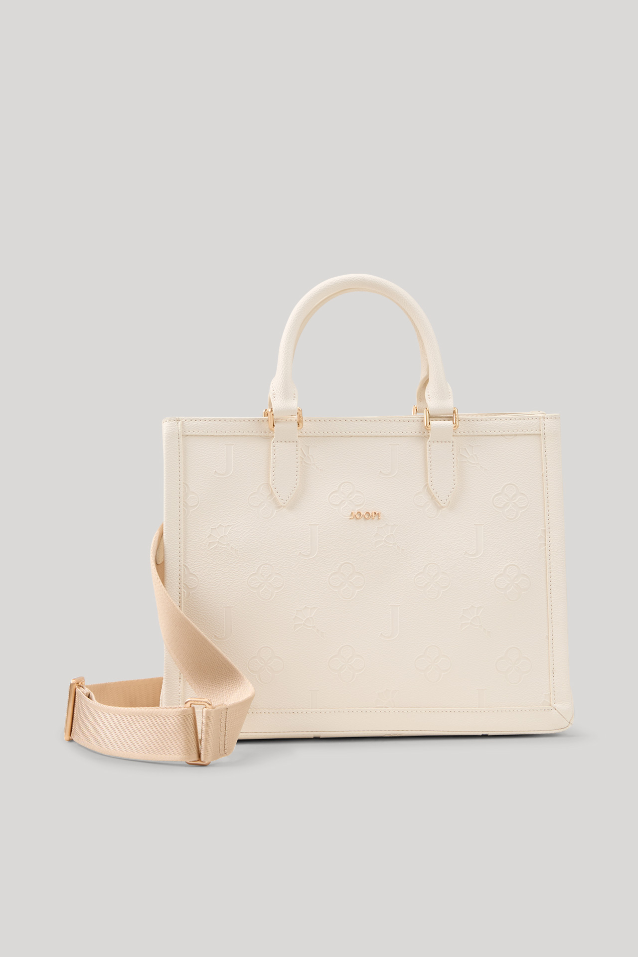 Heritage accessory: the Decoro Edition Aurelia handbag in a stylish logo look showcases an embossed faux leather finish. A concealed zip fastening and the signature brand shoulder strap with adjustable carabiner clasps lend the design a functional finish. The lining with contrasting stripes makes an eye-catching statement.