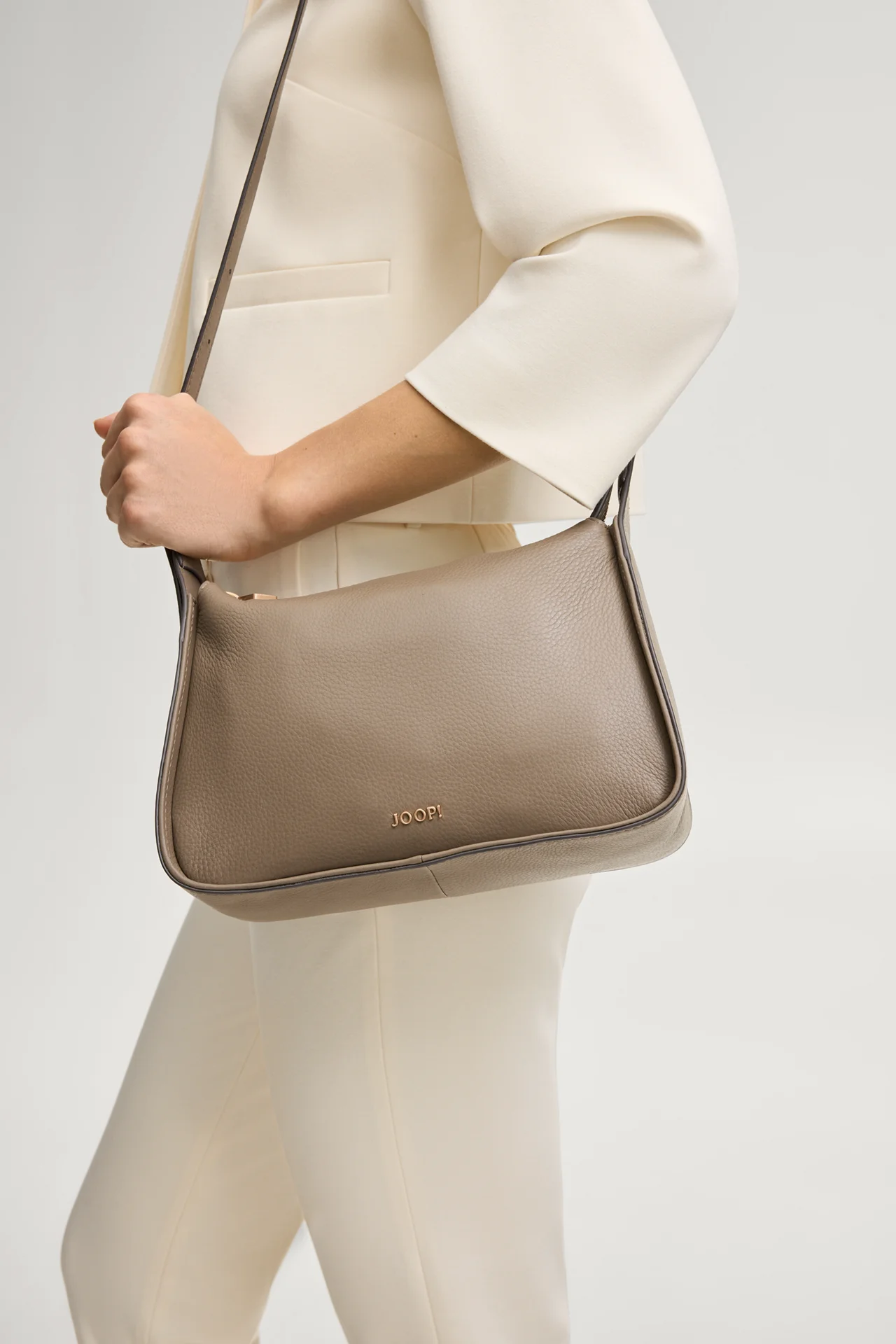 A versatile choice for both casual and business styles, the Lipari liah shoulder bag is crafted from pure cowhide leather with a fine grain. The bag features an inlay with a classical zip fastening, completed by a slim shoulder strap with an adjustable length. The metallic embossed logo on the front provides a harmonious emphasis.