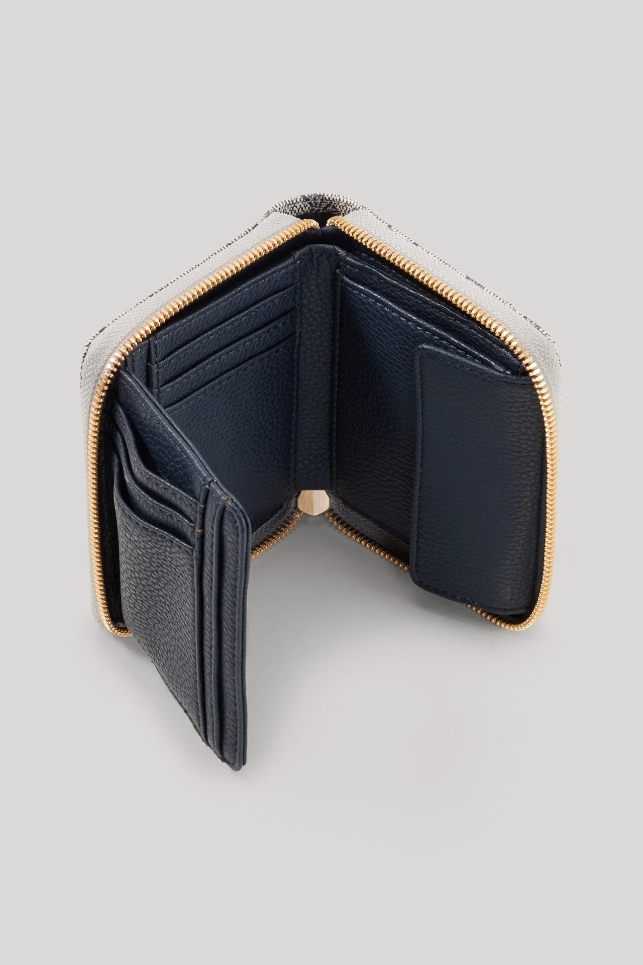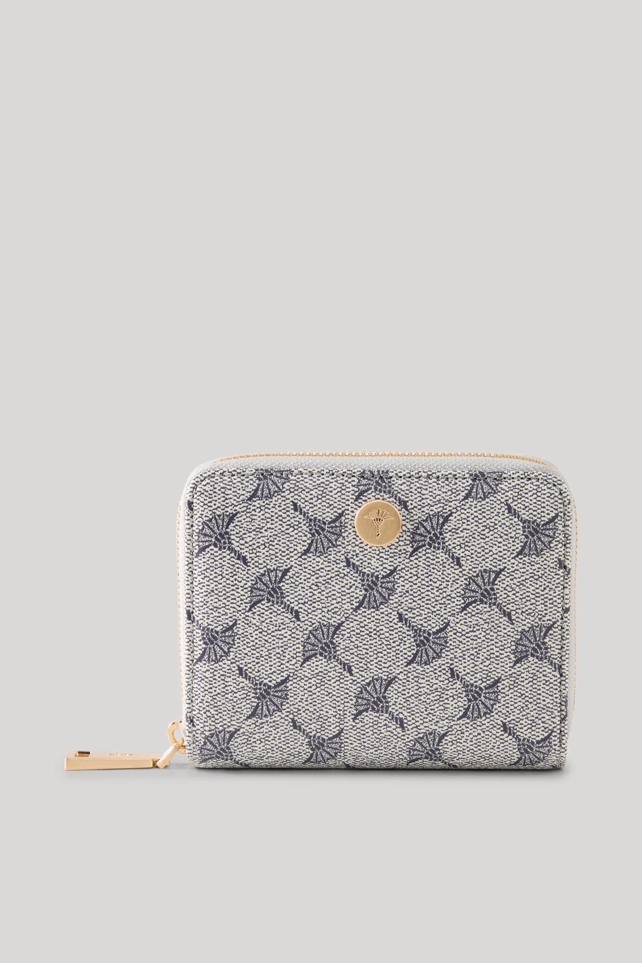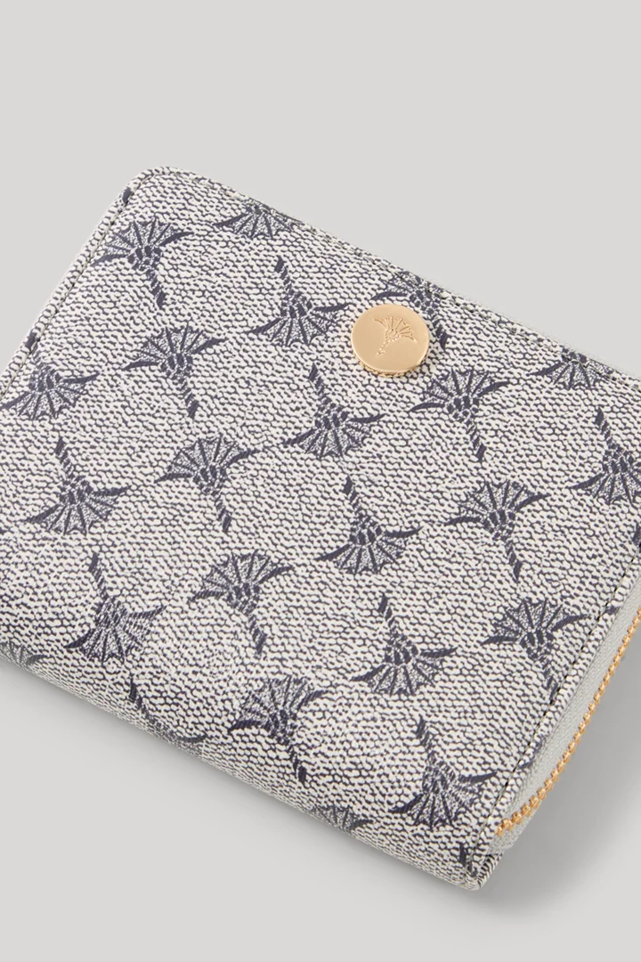 An iconic accessory, the Mazzolino Nisa purse features an all-over cornflower print with a matching metallic logo plaque. The piece has a zip fastening and is characterized by its inlay, which includes various pockets, card slots and compartments for notes. An additional compartment with a flap and press stud for coins completes this accessory in style.