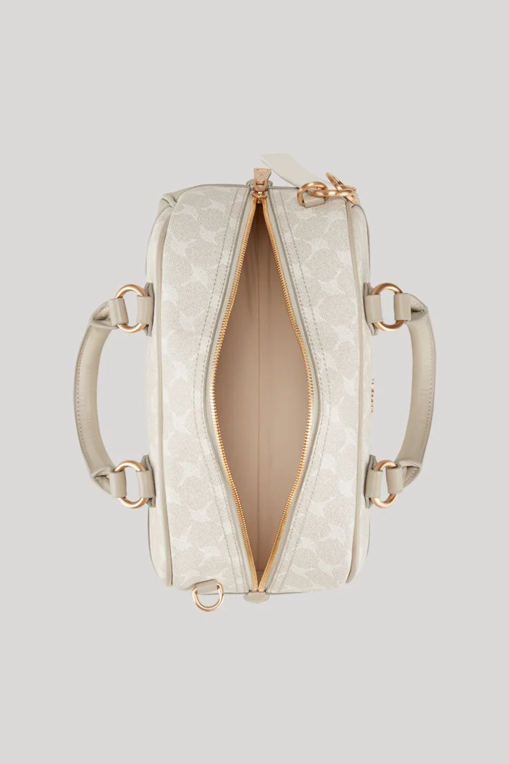 Featuring a logo design with leather-look details and refined hardware, the JOOP! Mazzolino Edition Roxy handbag is sure to impress you as a stylish accessory. Short handles and the adjustable carabiner shoulder strap ensure a versatile finish, while the zip fastening rounds off the piece in comfort. The logo key ring stands out as an eye-catching detail.