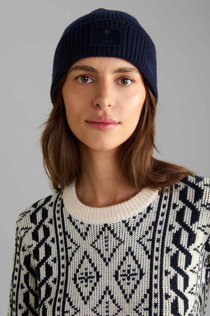 A classic turn-up and the tonal logo patch with a shiny finish are the hallmarks of this knit beanie. The fine wool blend with yak gives this versatile piece a soft feel.