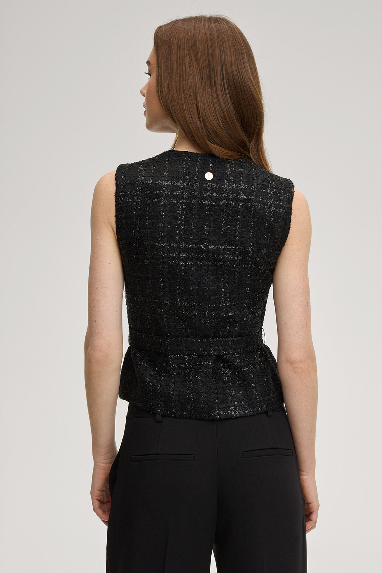 Viola highlight: The sleeveless waistcoat features a tweed design with logo-embossed buttons and flap pockets for a versatile look. The round neckline and adjustable waist belt add feminine touches, while the tapered hem accentuates the stylish twist. This essential is suitable for business, formal occasions and smart-casual outfits.