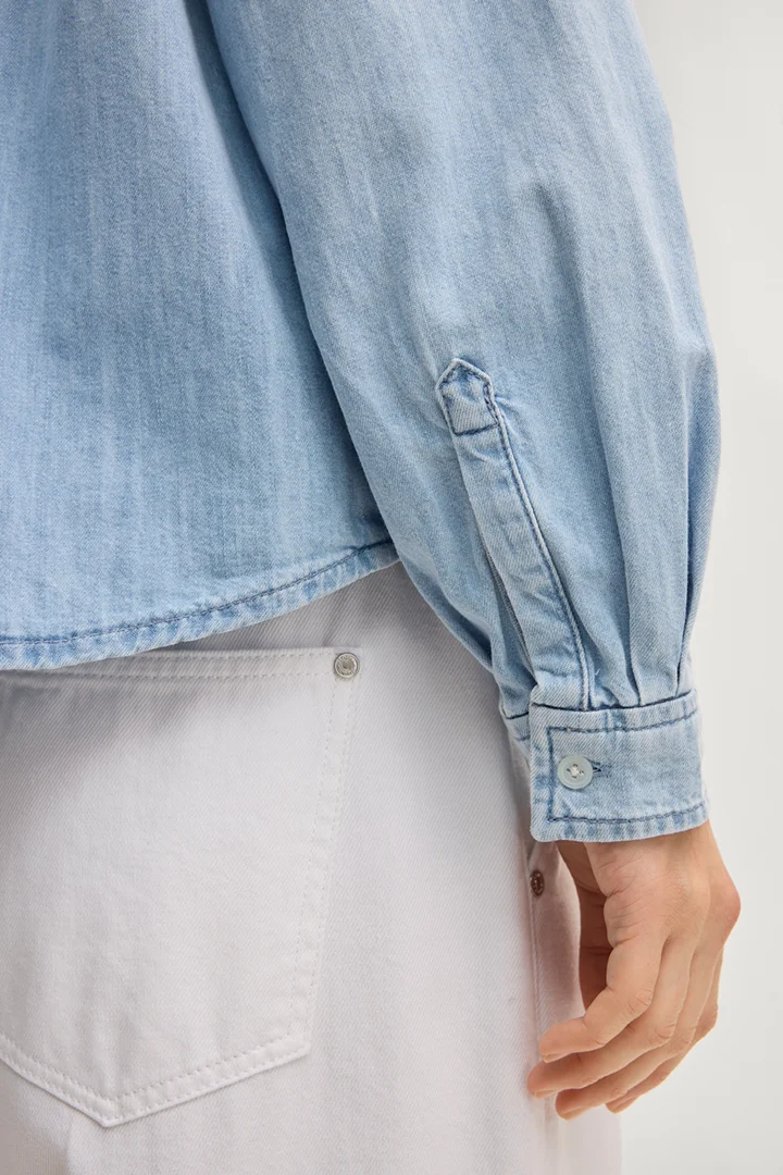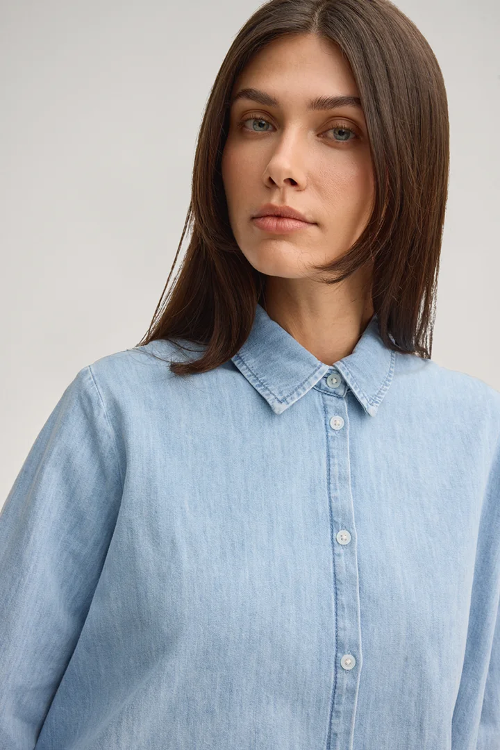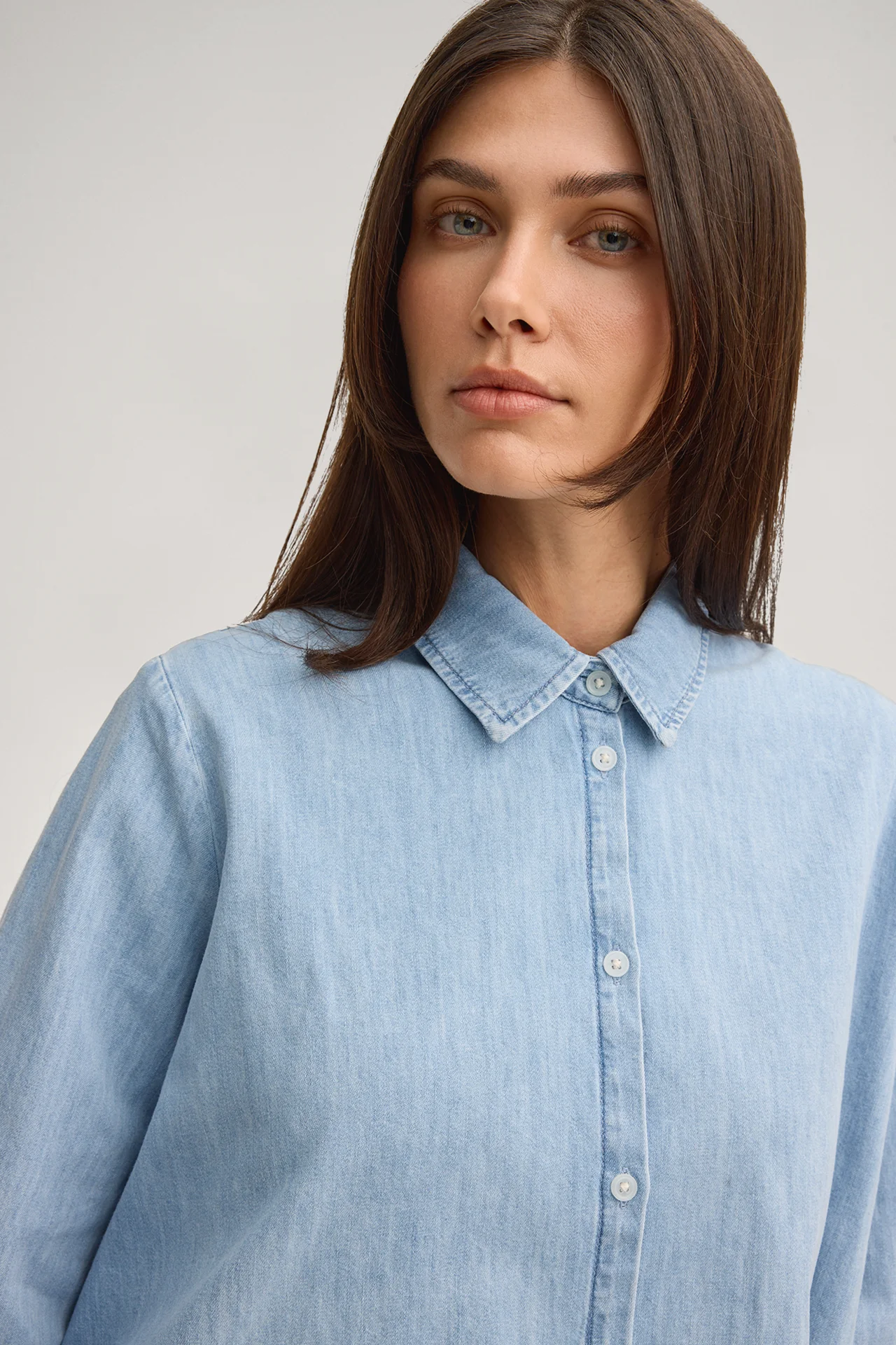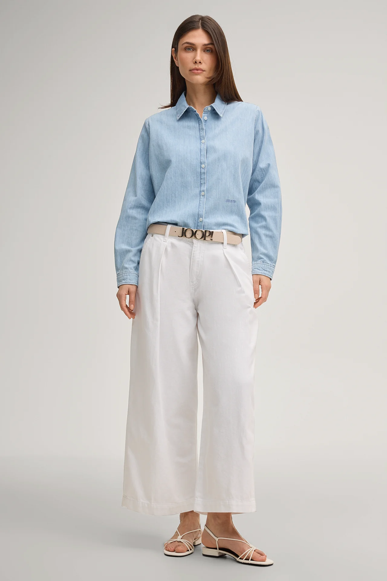 The feminine Urmina denim blouse offers versatile styling options for smart casual looks. The shirt collar, buttoned cuffs and classical button placket give distinctive accents. An embroidered logo completes the piece. The pure cotton fabric provides a comfortable fit.