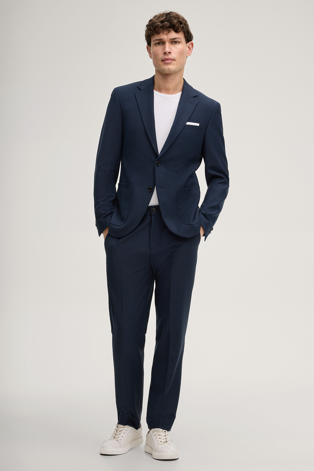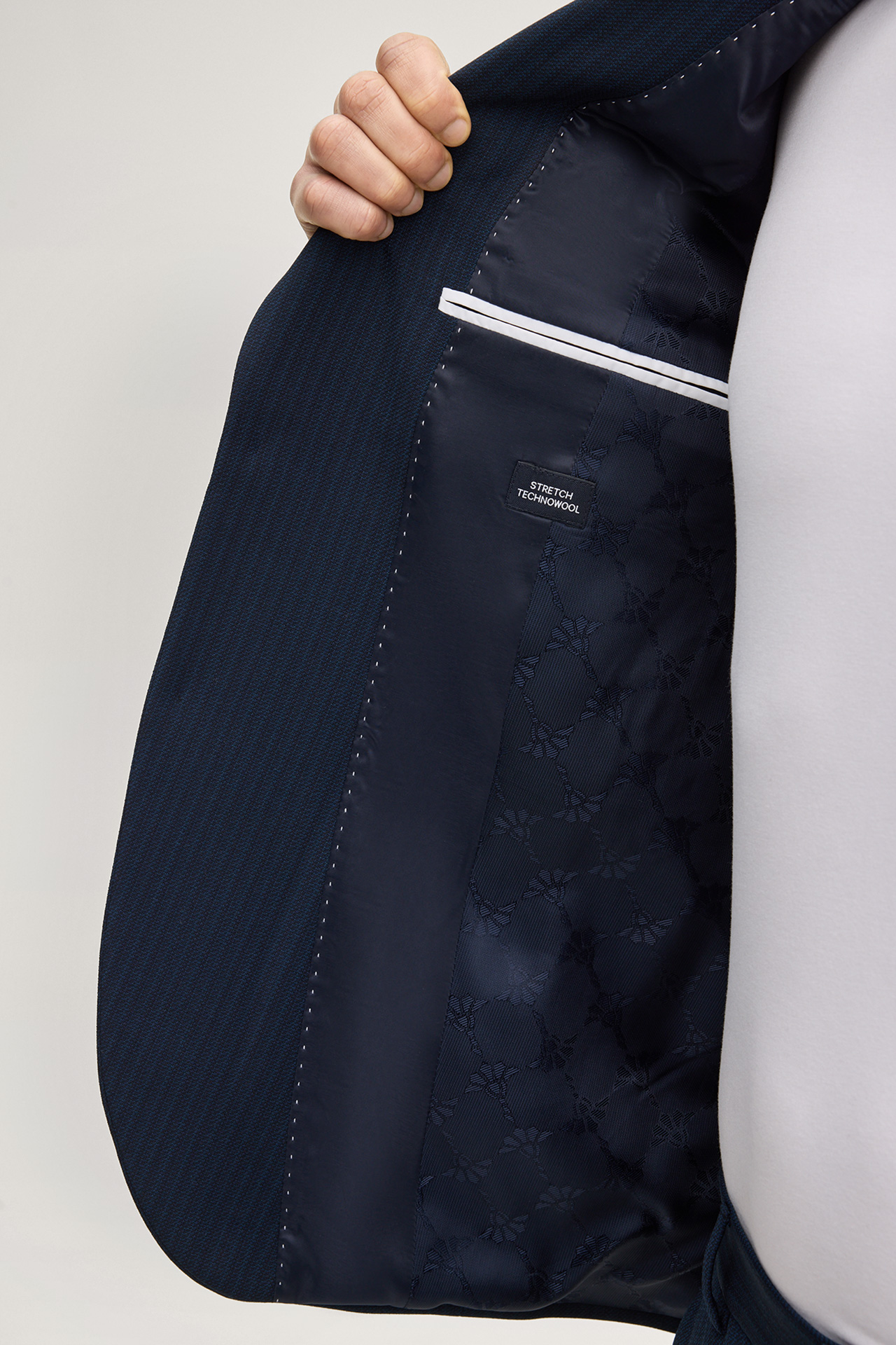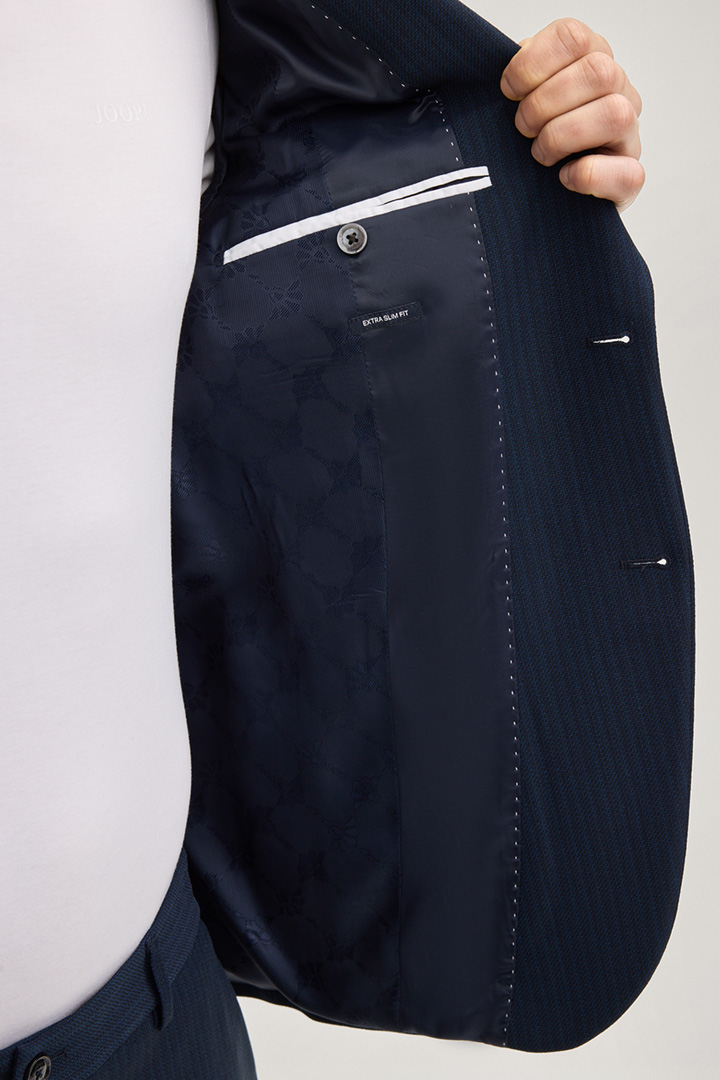 The Dallas modular jacket with its subtle jacquard pattern creates an elegant look. The lapel collar, breast welt pocket and double slits offer tailored elements. Patch pockets complete the design. The lining in a signé print creates an iconic accent. This jacket is ideal for formal occasions and professional settings.