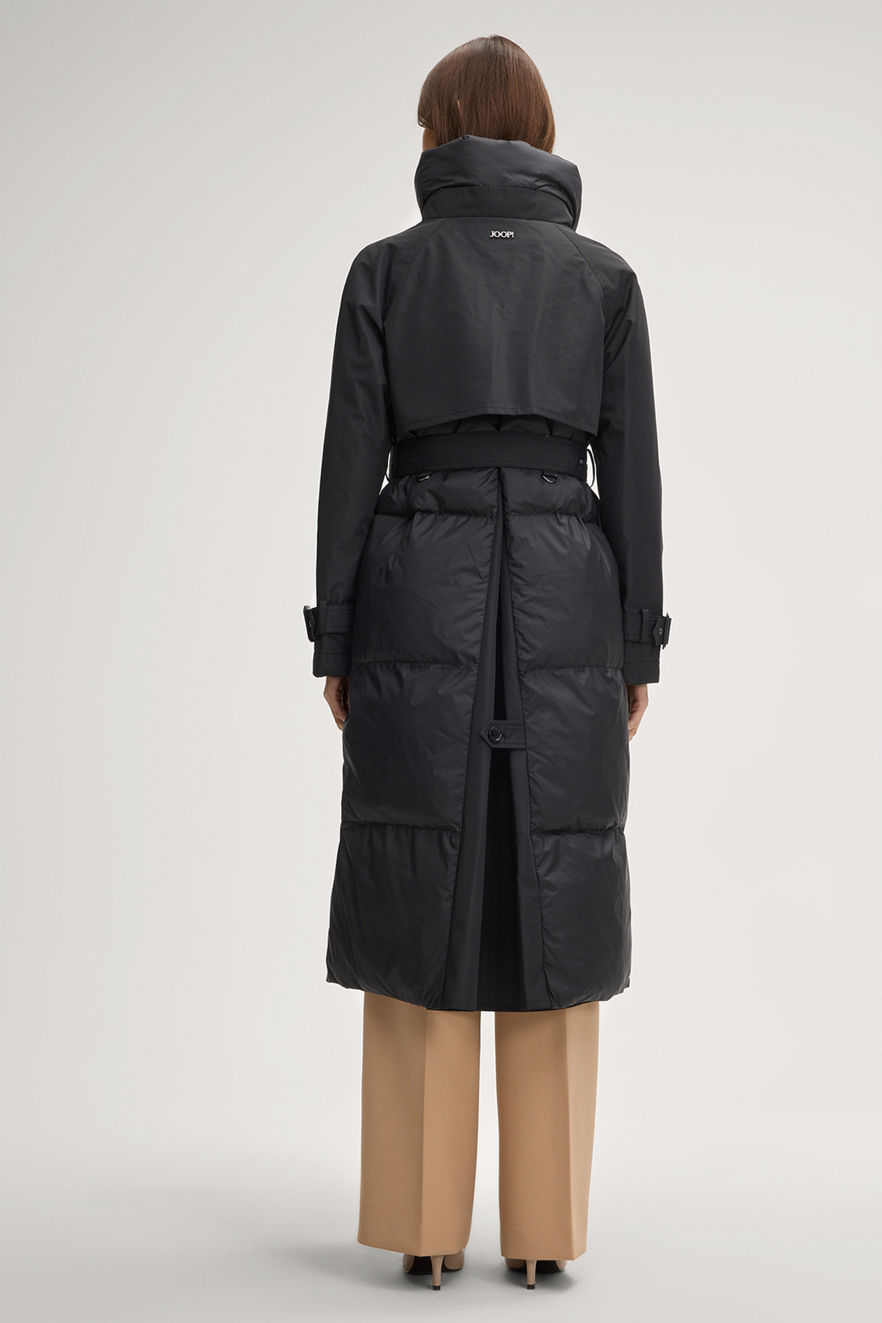 Trench-style highlight - the REPREVE® padding adds a casual performance twist to the Chiara quilted coat. A high stand-up collar, side slit pockets and a concealed placket set this piece apart. The waist belt and modern slit create practical accents.