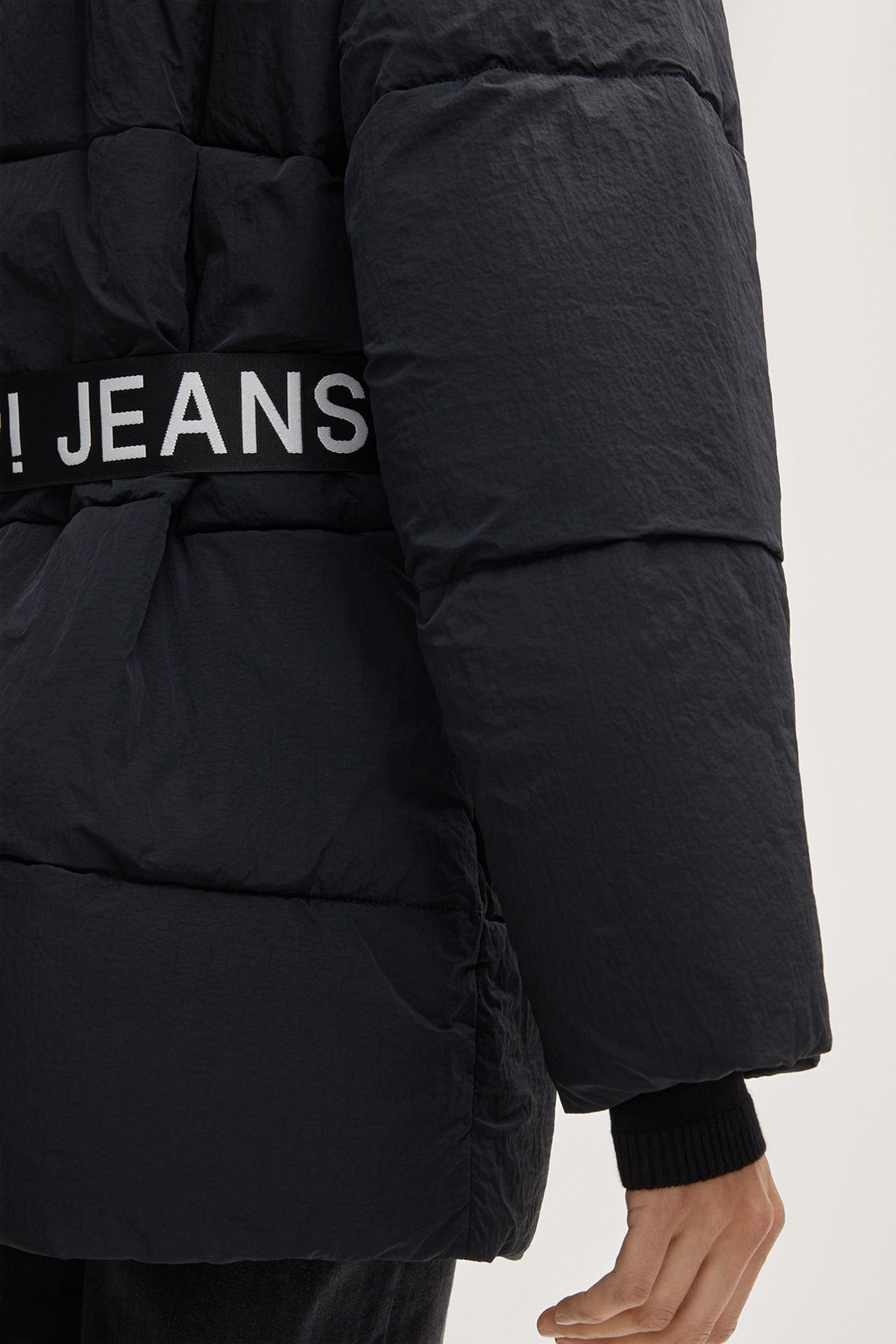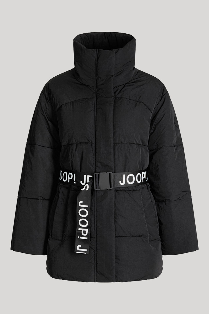 The Coralie short quilted coat is a winner with its casual silhouette. Crinkled nylon offers a modern upgrade, complemented by a high stand-up collar and the adjustable logo belt with click fastening. Side slit pockets and a concealed placket round off this practical piece.