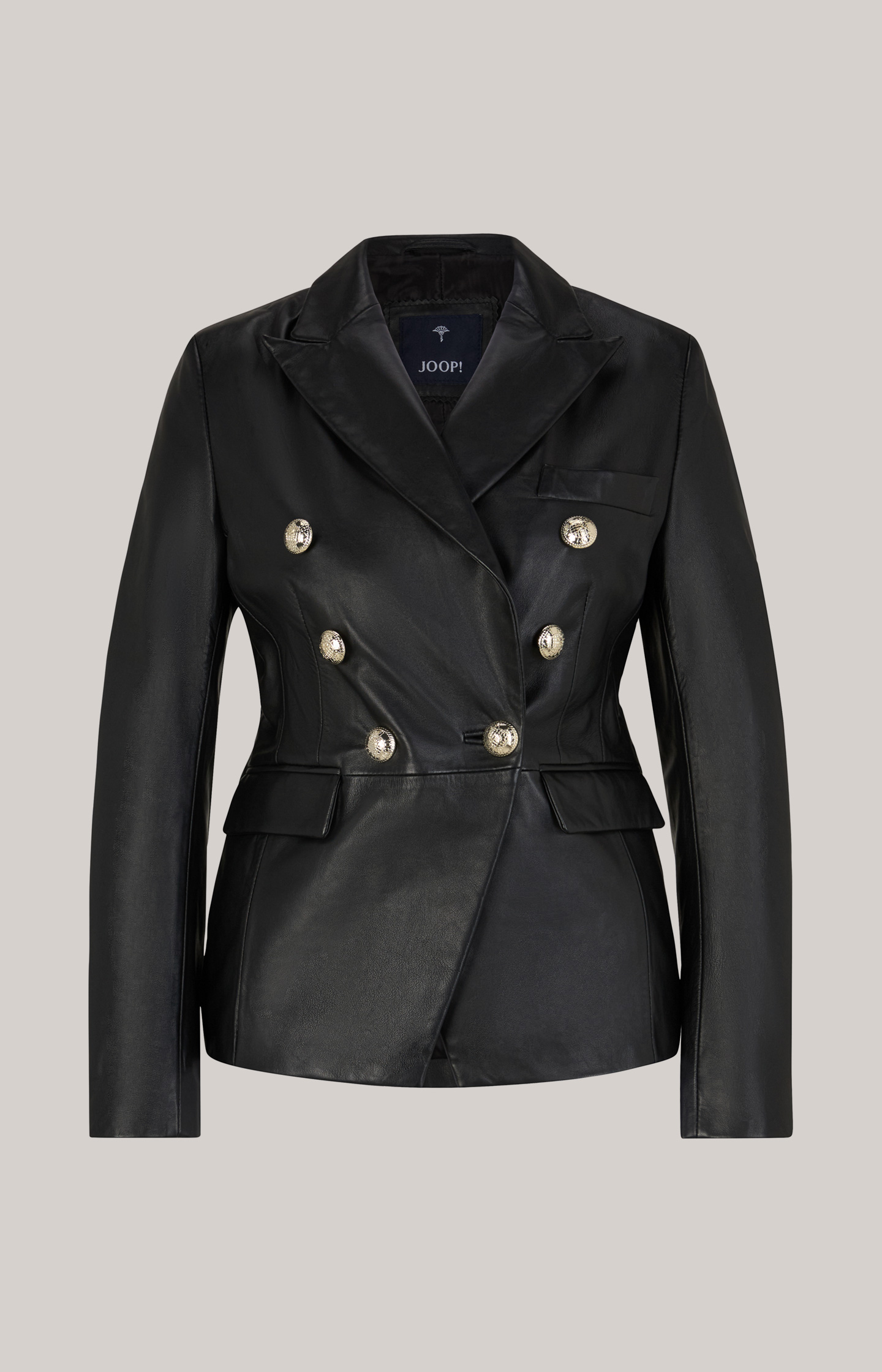 This blazer in luxurious nappa lamb leather flaunts a double-breasted design with peak lapels. Iconic signature buttons mark out the design, harmoniously complemented by piped flap pockets and shaping seams. The flowing lining and lightweight shoulder finish take comfort to the next level.