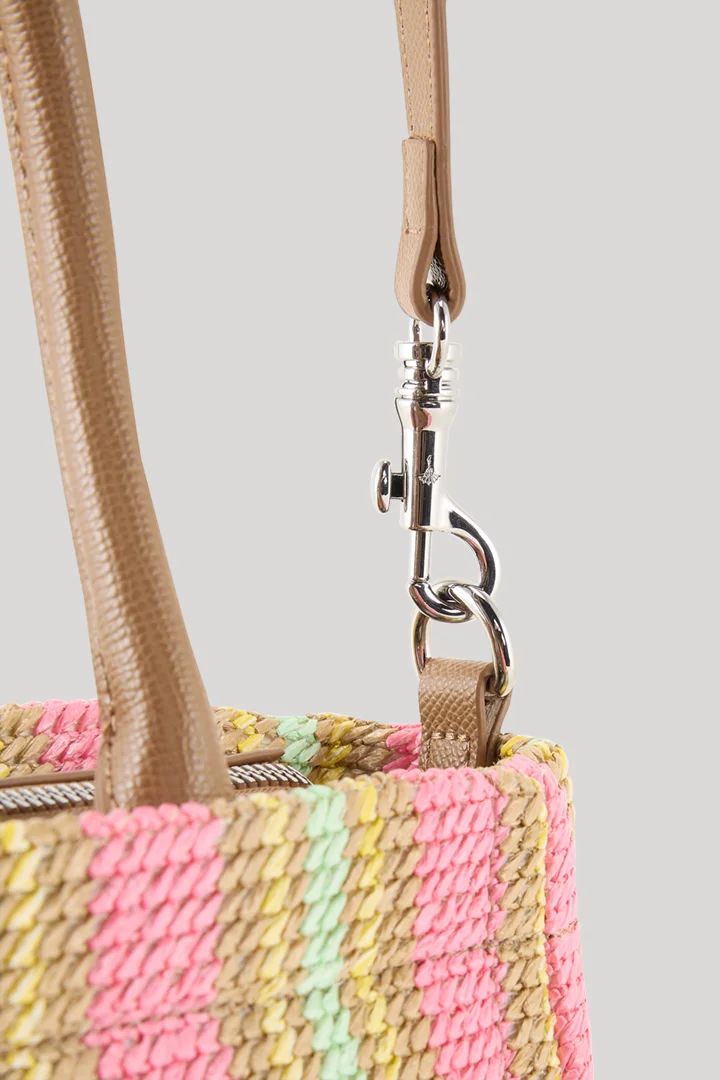 The Istria yvette shopper bag is a modern take on versatile looks – whether paired with a flowing dress, a blouse and Marlene trousers, or used as a beach bag for relaxing by the sea. The raffia-effect material in a striped design, accentuated by the label stitching on the front, provides a sophisticated look. The zip-in insert and classical carrying handles complete the design. The narrow shoulder strap in an elegant belt style with a snap hook provides a harmonious finish.