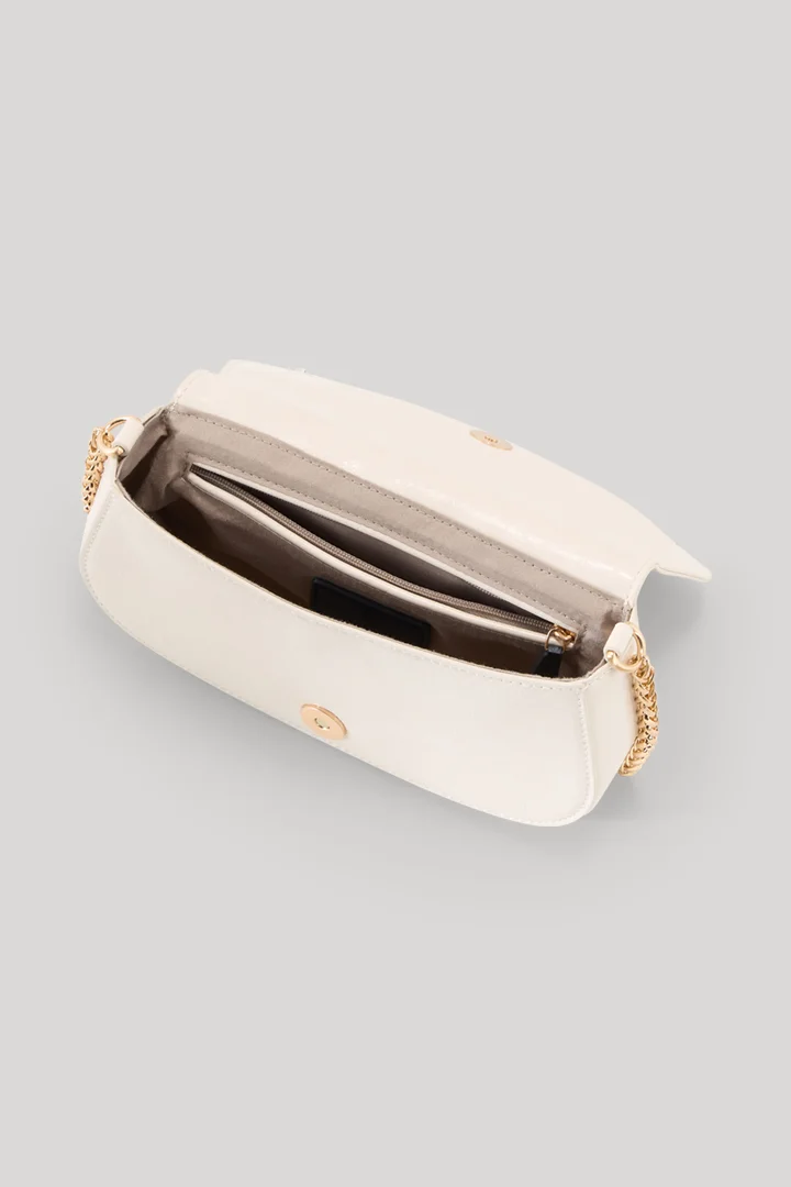 The Scala Hoda shoulder bag is a feminine accessory that inspires with its elegantly rounded silhouette, featuring a flap and concealed magnetic fastening – stylish in style for both day and evening wear. Soft faux leather gives it a luxurious look, completed by the shiny gold chain strap and iconic hardware. The bag features a secure inner compartment.