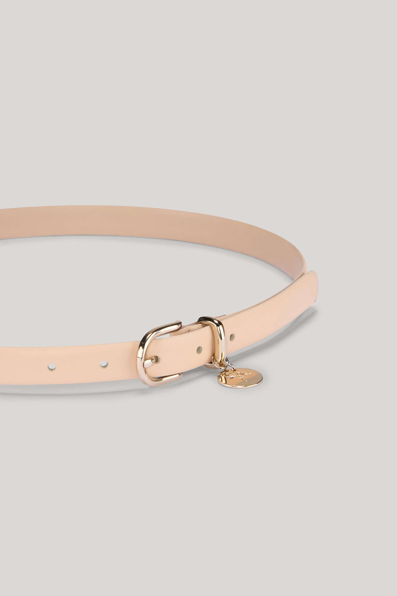 This JOOP! belt makes an impressive and stylish accessory with its narrow design in pure leather with a classic pin buckle. The gold-effect logo pendant adds a sophisticated twist, while the five punched holes lend a comfortable and versatile finish to the style.