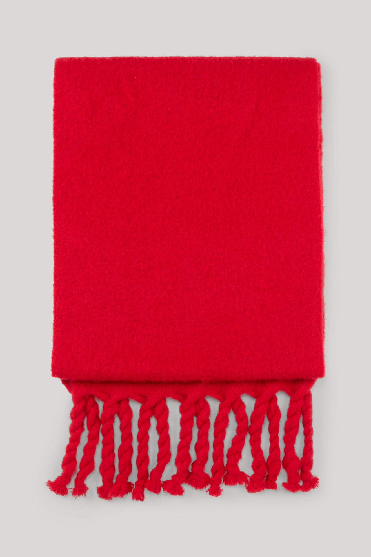 The Almu scarf in a wool blend is a warming accessory to complement a variety of looks. Fringed edges add modern accents.