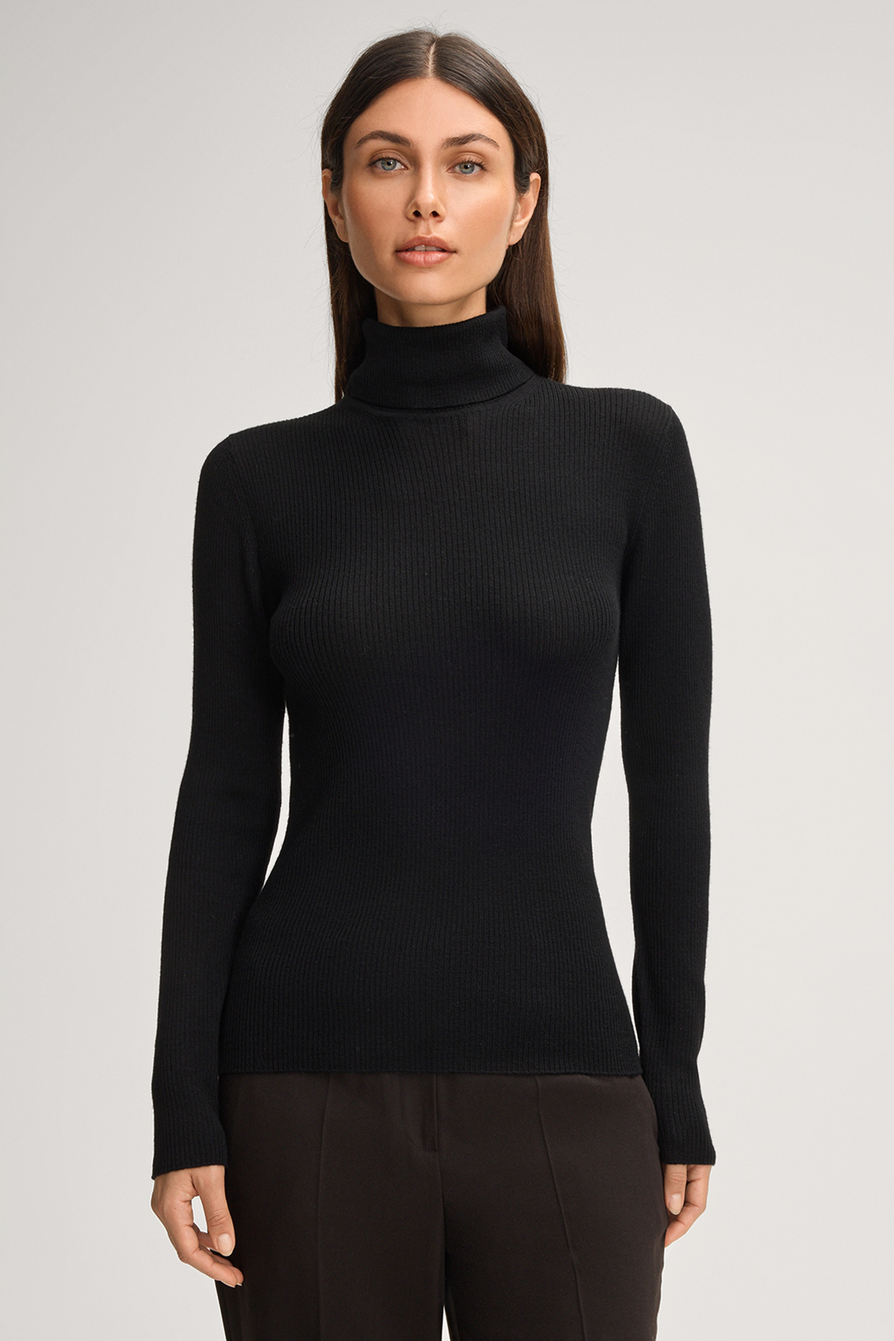 In an understated design with clean cuffs, the lightweight Kalis pullover will win you over as a versatile essential - ideal on its own or in a layered ensemble. The classic polo neck complements the piece. The ribbed knit quality in pure wool ensures a comfortable finish.