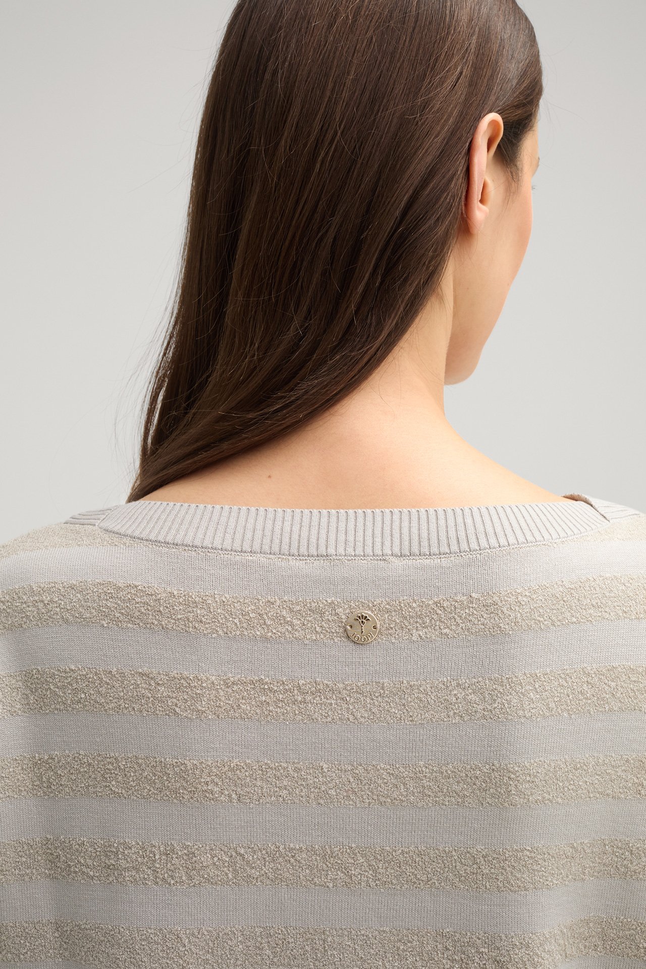 The Kady knitted shirt in a viscose knit with monochrome stripes boasts a textured design and stylish flair. The boat neck and dropped shoulders add a feminine finish. Elasticated ribbed cuffs complete the piece.