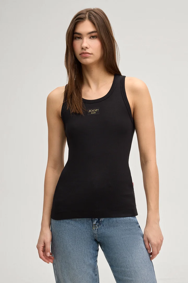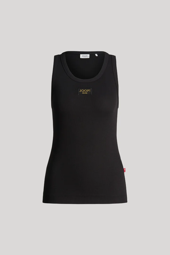 The ribbed Tana top in stretch cotton is a cool basic piece for versatile looks. The round neckline and sleeveless design offer classic details, while the logo patch on the front and branded flag add a touch of signature flair.