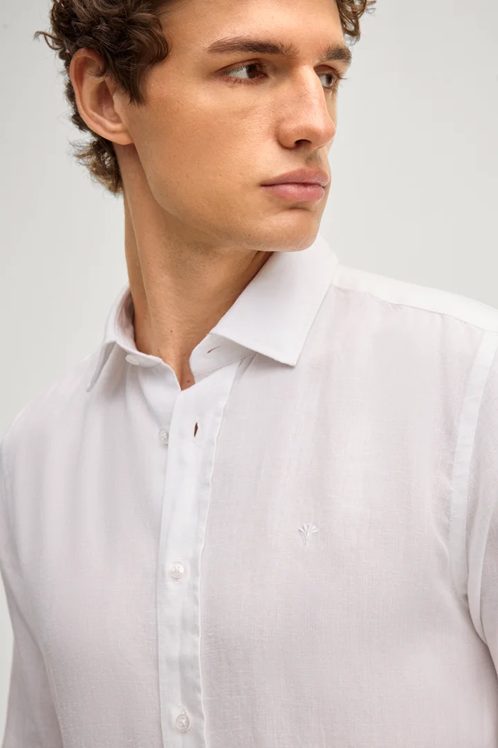 Koszula z mieszanki lnu Mike w kolorze białym