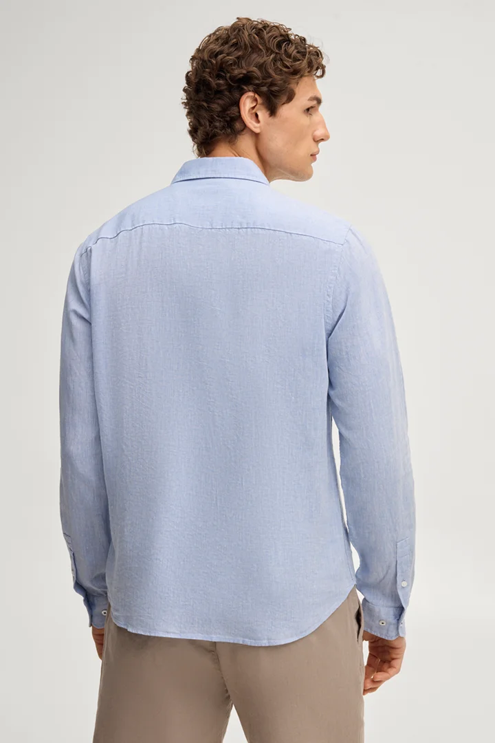 Koszula z mieszanki lnu Mike w kolorze jasnoniebieskim